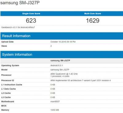 Ma il suo passaggio da Geekbench ci mostra, inoltre, che il Galaxy J3 ed.2017 è allestito con un processore quad-core Snapdragon 430 di Qualcomm con clock a 1,4GHz, 2GB di RAM e Android 6.0.1 Marshmallow (bella sorpresa, dato che la sua natura di device entry-level lasciava presagire Lollipop).