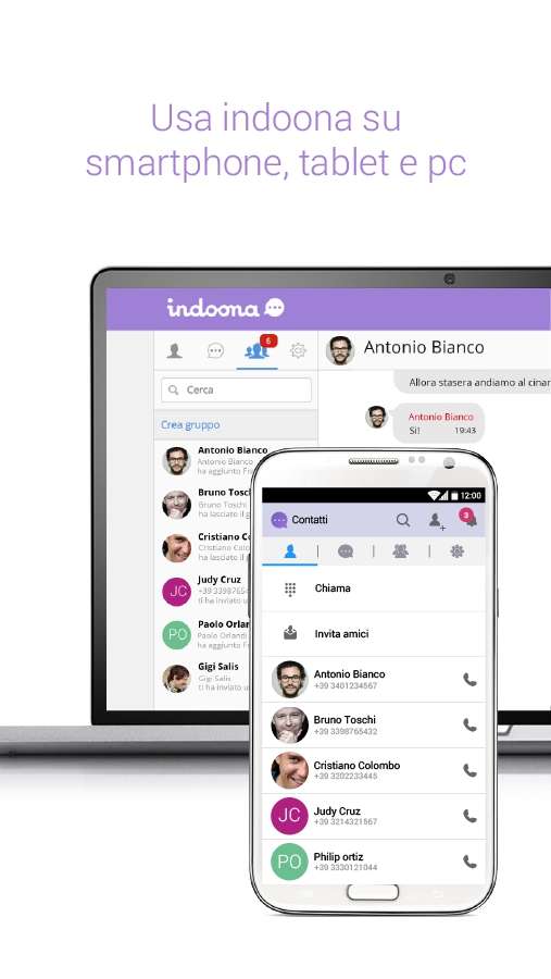 La nuova Indoona, infatti, oltre a presentare una grafica e un’interfaccia utente completamente rinnovata, più accattivante, veloce e intuitiva, integra una nuova feature che, mettendo al centro la volontà di condivisione degli utenti, consente di effettuare chiamate di gruppo con i propri amici ampliando così le funzionalità della chat di gruppo, uno strumento di condivisione oramai diventato parte della vita quotidiana. Questa funzionalità gratuita, unica nel panorama internazionale dei servizi e delle applicazioni di chat e messaggistica istantanea, risponde all’esigenza di chiacchierare con amici e familiari finalmente riuniti insieme, così come con i membri di un team di lavoro, che possono dialogare tra loro in simultanea.