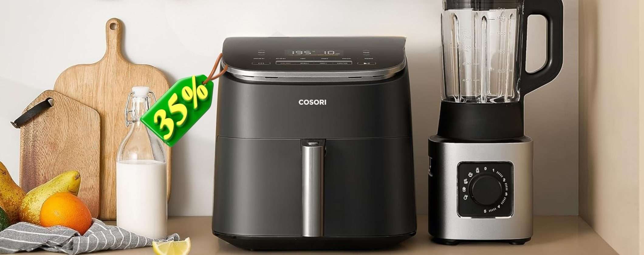 Dopo aver visto il funzionamento di una friggitrice ad aria hai capito che anche tu ne vuoi una e stai cercando qualcosa che non costi un’esagerazione? Allora oggi l’hai sicuramente trovata. Vai subito su Amazon e puoi acquistare la mitica friggitrice ad aria COSORI da 6 litri a soli 109,98 euro, invece che 169,99 euro.