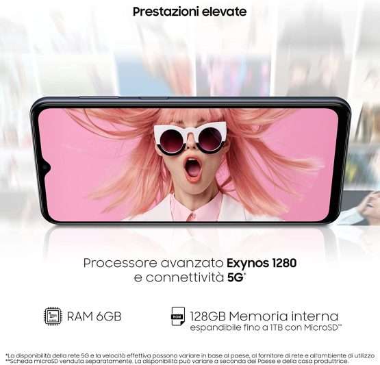 128 GB di memoria e tutto quello che ti serve sempre a portata di mano. Cosa stai ancora aspettando? Credimi se ti dico che non hai un minuto da perdere. Porta a casa il tuo meraviglioso Samsung Galaxy M33 5G consoli 249€ su Amazon. Le spedizioni sono completamente gratuite e veloci in tutta Italia con i servizi Prime attivi.
