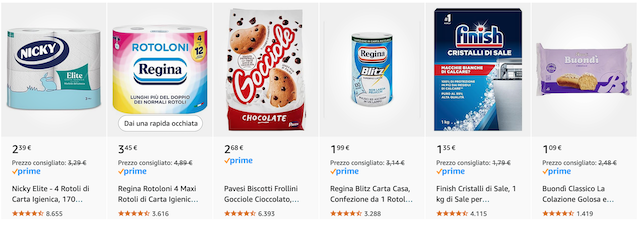 Mangia bene, prendi prodotti di marca e spendi pochissimo, grazie alle occasioni del supermercato di Amazon. Fai incetta di prodotti di qualità, tutti a meno di 2€ l’uno!