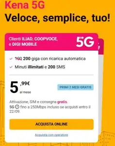 Tutto questo a soli 5,99€ al mese. Una cifra minima per un’offerta che molti operatori fanno pagare molto di più. Con Kena, invece, trasparenza e semplicità sono di casa: niente vincoli, niente rimodulazioni improvvise, solo ciò che scegli di pagare. È la soluzione ideale per chi ama restare connesso sempre: social, streaming, videochiamate o musica in alta qualità – tutto senza paura di esaurire i giga. E grazie alla rete affidabile su cui si appoggia Kena, puoi navigare con stabilità ovunque ti trovi. Attenzione: questa promozione è valida solo fino al 13 ottobre! Dopo quella data, non sarà più disponibile. Attiva la tua offerta in pochi minuti online, tramite SPID o video selfie, e inizia a goderti 2 mesi gratis di pura libertà digitale. Con Kena Mobile, la convenienza diventa illimitata.