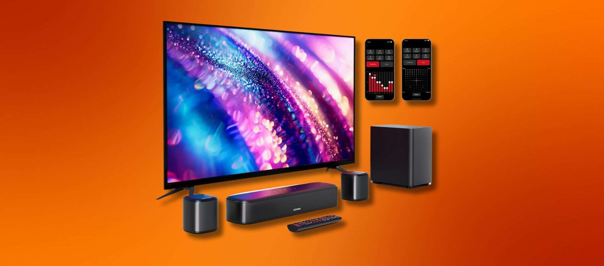 Chi desidera un sistema home theater potente ma accessibile ha oggi un’opzione concreta su Amazon: la Ultimea Aura A30, una soundbar 5.1 canali completa di subwoofer cablato e due altoparlanti surround, è in offerta a 99,99€ con il 17% di sconto. Una cifra contenuta per portare a casa un impianto sonoro capace di valorizzare film, musica e giochi con un audio dinamico, preciso e avvolgente.