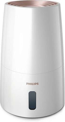 L’umidificatore proposto da Philips ha un design interessante. Sviluppato per non cozzare con gli interni, può essere collocato in una stanza di propria scelta senza preoccuparsi che possa stonare. In questa colorazione bianca e oro rosa è molto elegante.