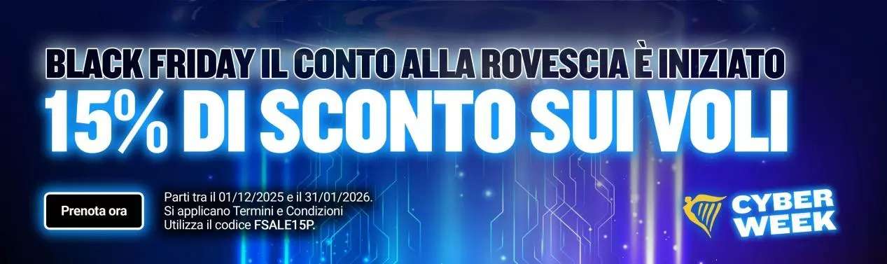 Il Black Friday prende il volo grazie alla nuova promozione Ryanair, che propone uno sconto del 15% su numerose destinazioni europee. È l’offerta perfetta per programmare un viaggio prima della fine dell’anno o concedersi una pausa invernale senza spendere troppo. Hai tempo fino al 26 novembre per approfittarne: ecco tutti i dettagli.