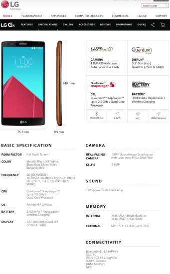 Diverso il discorso per le specifiche tecniche: non si riesce a stabilire, a una prima occhiata, quanto sia effettivamente riferito al nuovo modello, e quanto non sia invece semplicemente un copia-incolla delle specifiche del "vecchio" G3, piazzate lì per riempire lo spazio in attesa di aggiornare il contenuto. Pare tuttavia possibile confermare con una certa sicurezza la presenza di una batteria, rimovibile, da 3.000mAh, nonché una fotocamera posteriore con stabilizzazione ottica (OIS) e sistema di messa a fuoco laser. La lente posteriore dovrebbe essere molto luminosa, f/1,8, ma non è chiara quale sarà la risoluzione del sensore: 13 megapixel, come riferisce il mini-sito, o 16 megapixel come si era vociferato e come ha fatto la concorrenza?