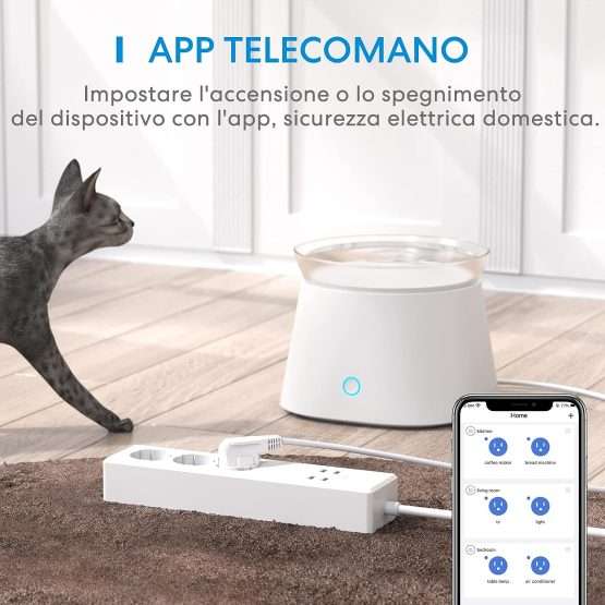 Questa multipresa è smart ma la utilizzi come un modello più comune. Lo colleghi alla corrente ed entra in funzione per non dover impazzire. Per gestirla, invece, ti basta scaricare l’applicazione sul tuo smartphone o, in alternativa, puoi usare la tua voce visto che è compatibile sia con Amazon Alexa che Google Assistant.