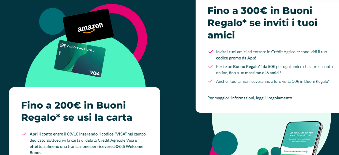 A questo punto, non ti resta che aprire subito il tuo conto Crédit Agricole, soprattutto se sei arrivato fino a qui. Usa il codice VISA e inizia a fare acquisti su Amazon, così potrai iniziare ad accumulare buoni Amazon.