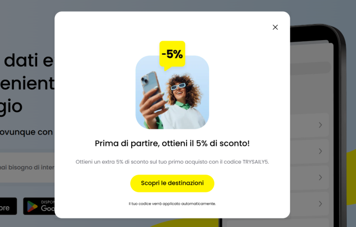Per quanto riguarda i prezzi, si parte da 2,99$ ed è possibile scegliere fra piani locali, regionali e globali, con velocità che raggiungono i 100 Mbps. In più in questo momento puoi sfruttare la promozione che permette di avere il 5% di sconto su tutti i piani: basta inserire il codice TRYSAILY5 in fase di acquisto.
