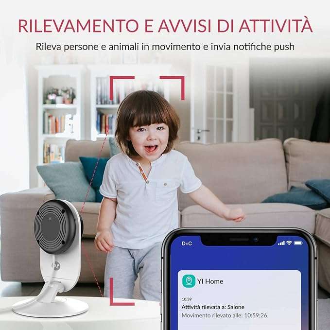 Inoltre, se sei cliente Amazon Prime, potrai avere la spedizione e il reso gratuiti in tutta Italia, senza alcun costo aggiuntivo. Se ancora non lo hai fatto, attiva subito la prova gratuita di 30 giorni in qualsiasi momento. Dunque, al prezzo imbattibile, ti porterai a casa questa ottima videocamera di sorveglianza che ti offrirà dei video con risoluzione 1920 x 1080p (Full HD), con lente grandangolo e zoom digitale 4x.