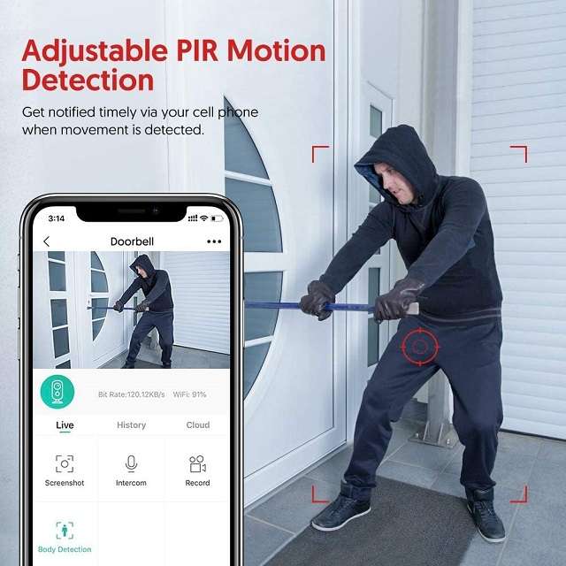 Stiamo parlando del videocitofono della Victure che presenta una ripresa con risoluzione FullHD 1080P ad ampio angolo con visione notturna ad infrarossi. La comunicazione tra l’interno e l’esterno e viceversa è garantito da un microfono real time a due vie con audio bidirezionale e video in live view che permettono di visualizzare e parlare con le persone alla porta di casa anche quando non si è presenti in casa utilizzando semplicemente lo smartphone.