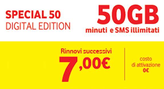 La Vodafone Special 50 è disponibile online o chiamando il numero verde 800034663 solo per chi ha ricevuto l’SMS winback con costo di attivazione gratuito. Tale promo è attivabile fino al 2 Settembre 2021.