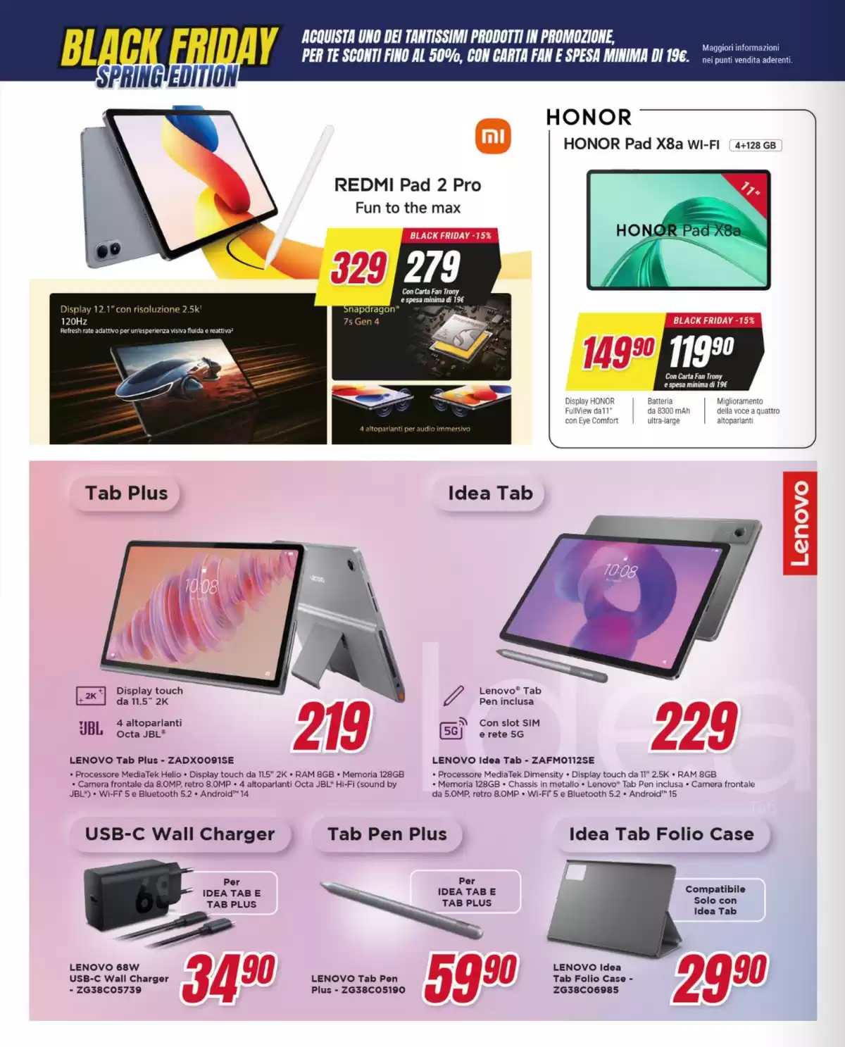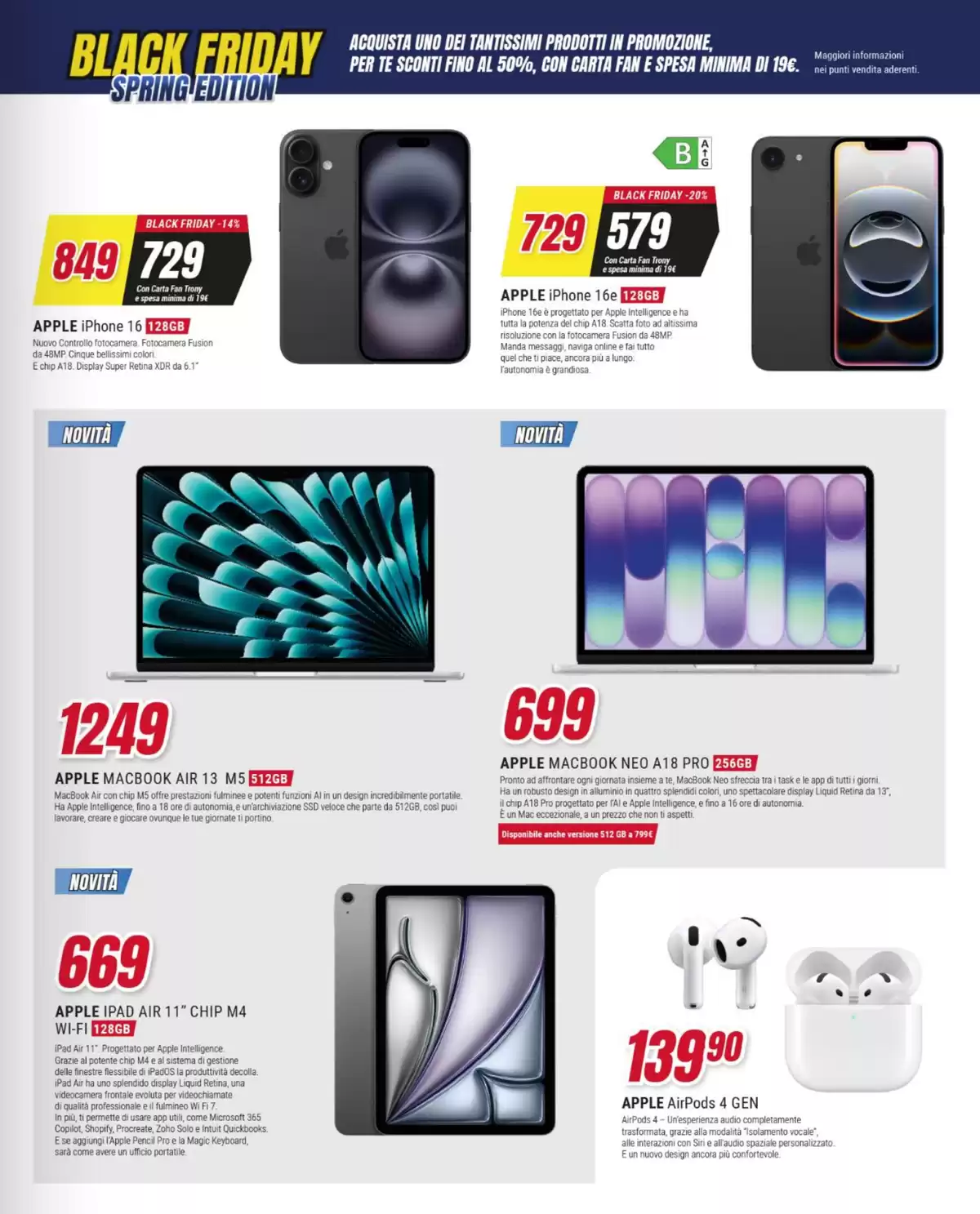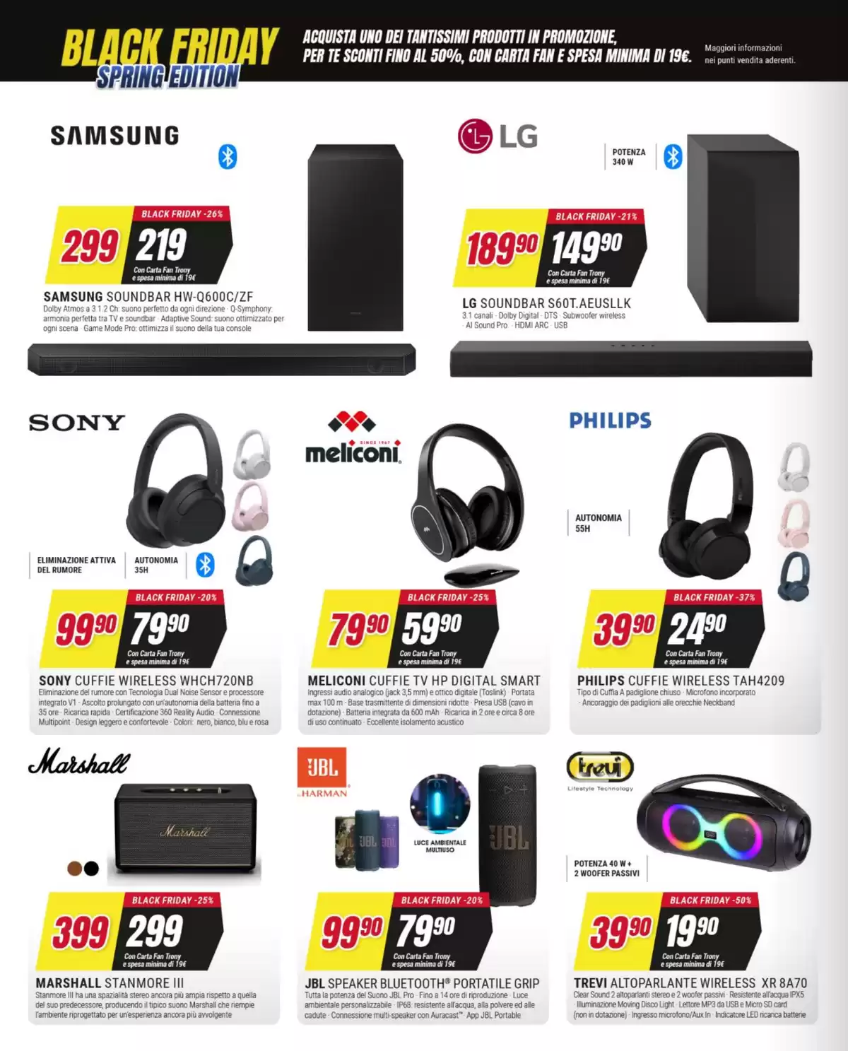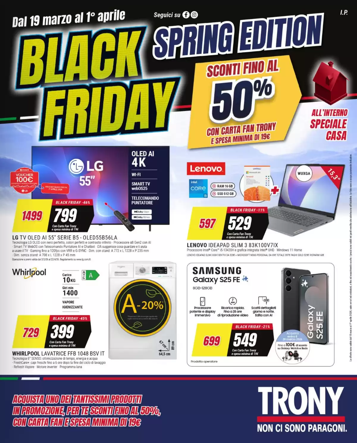 Il volantino Trony con il Black Friday edizione primaverile sarà attivo fino al 1° aprile nei punti vendita della catena, salvo esaurimento scorte.