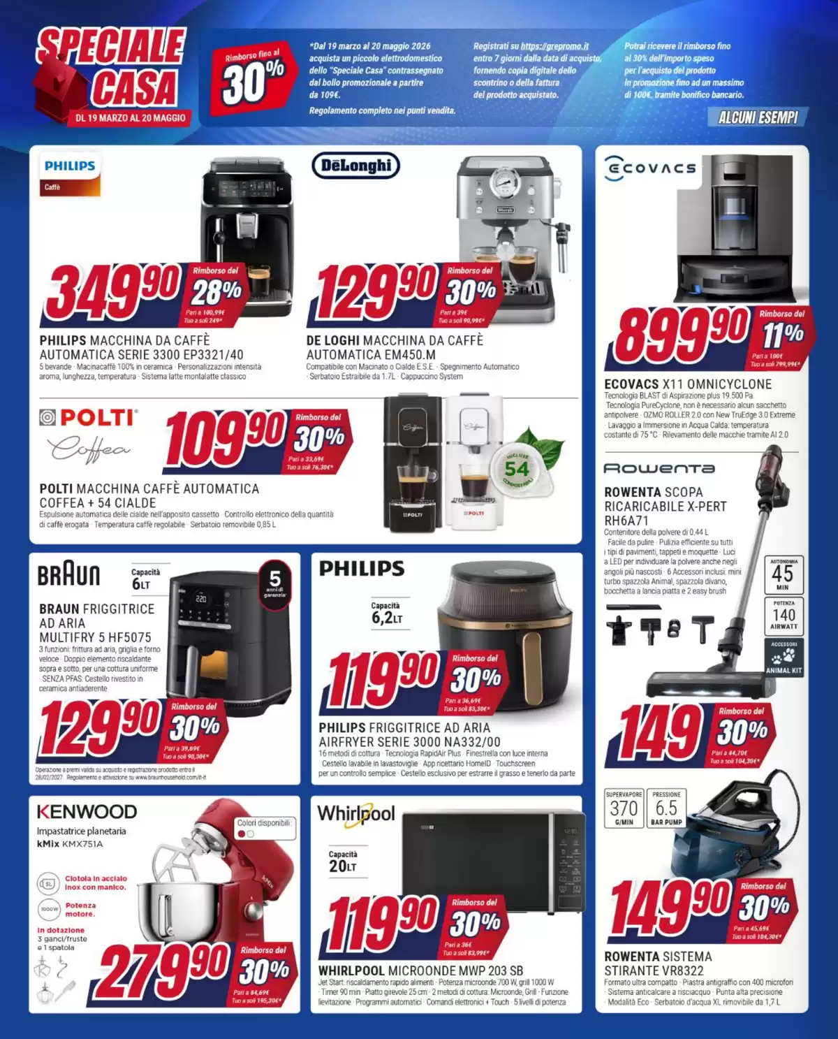 Infine, un’offerta per la casa: lavatrice Whirlpool con carico massimo 10 kg, classe A e funzione vapore igienizzante a 399 euro: un risparmio del 45%, quasi la metà, sul prezzo consigliato di 729 euro.