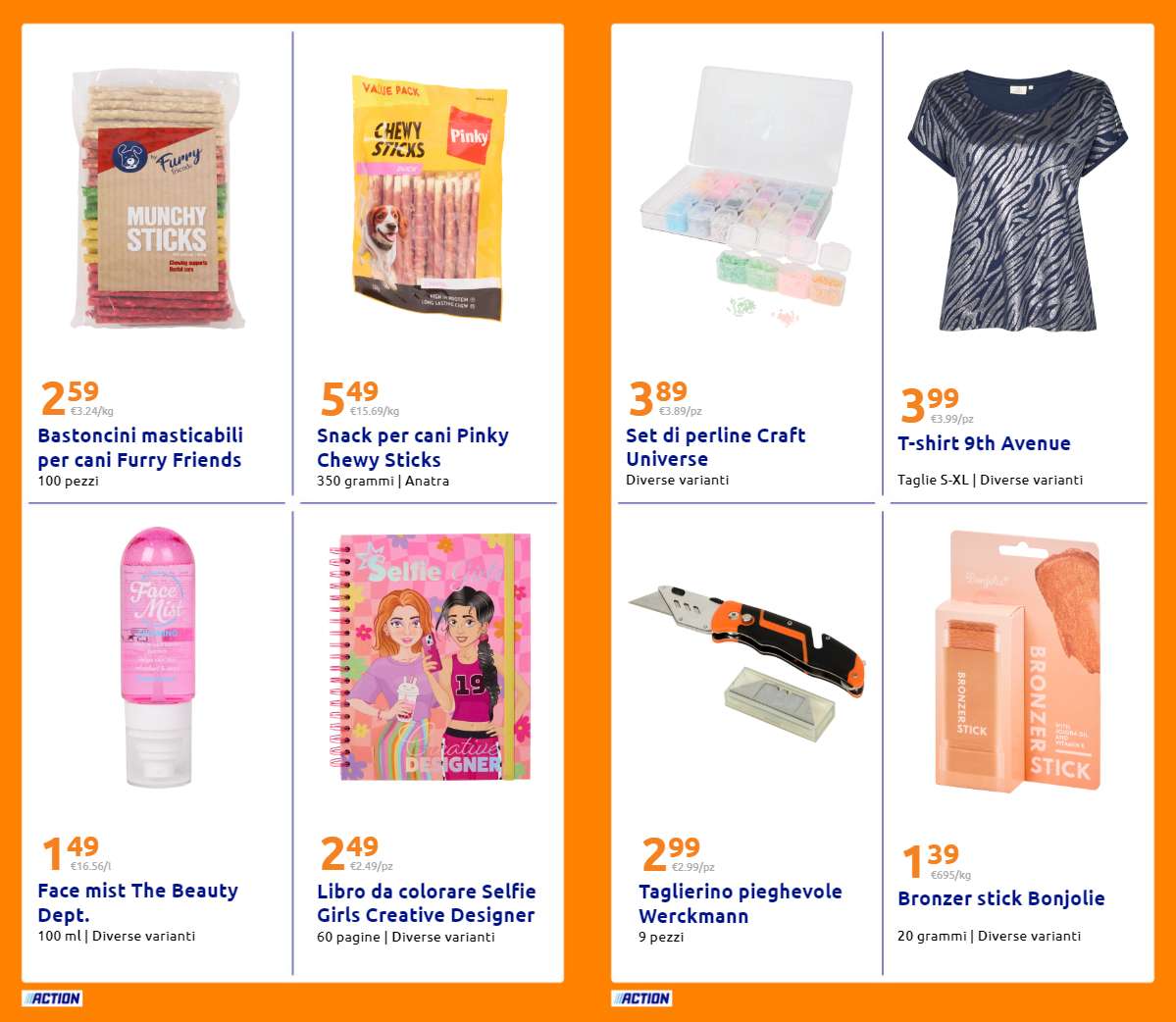 Il volantino Action con tutte le promozioni della settimana sarà attivo fino a martedì 14 aprile, in tutti i punti vendita. Ma attenzione: come sempre, si tratta di offerte in quantità limitate che vanno spesso a ruba.