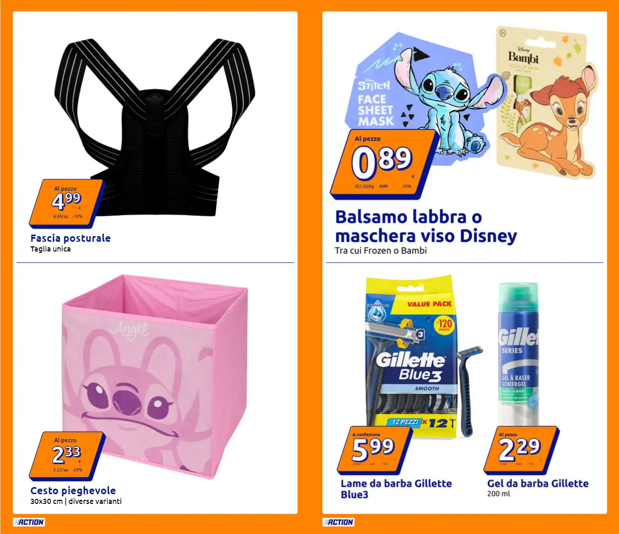 Tra le migliori offerte segnaliamo i set di pigiami da donna e per bambini a partire da 3,99 euro, in diverse varianti e misure. Utile è la fascia posturale, in taglia unica, a 4,99 euro, mentre per la cura personale ci sono lame da barba, gel da barba, balsamo labbra e maschere viso a tema Disney, a partire da soli 89 centesimi.