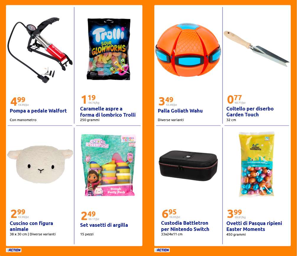 Nuovo volantino Action della settimana, con tantissime nuove offerte a prezzi eccezionali. Fino a martedì 7 aprile, puoi approfittare di numerose promozioni, tra cui giochi per Nintendo Switch, attrezzi per il giardinaggio, strumenti per la casa, airstyler e molto altro.