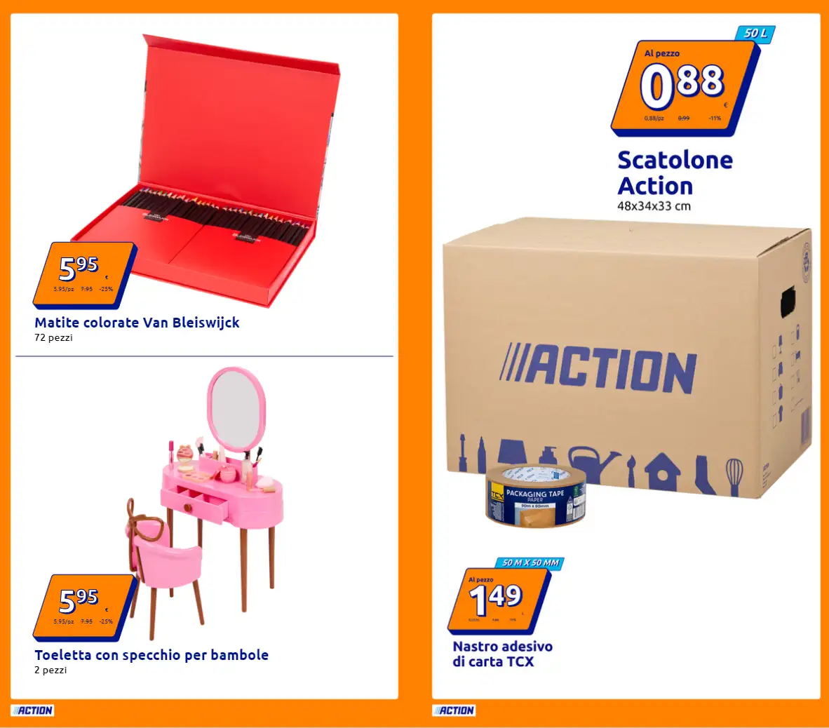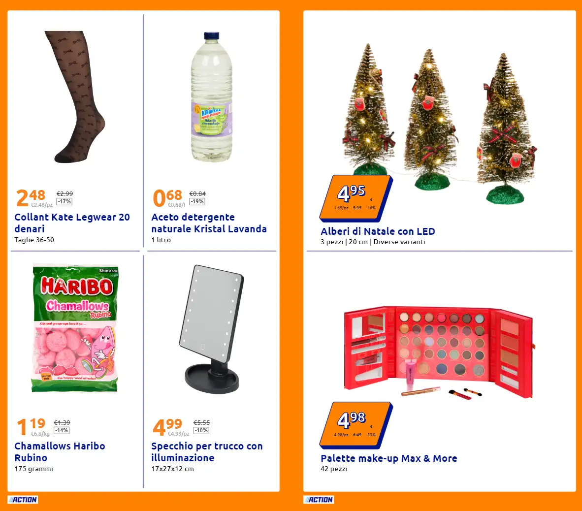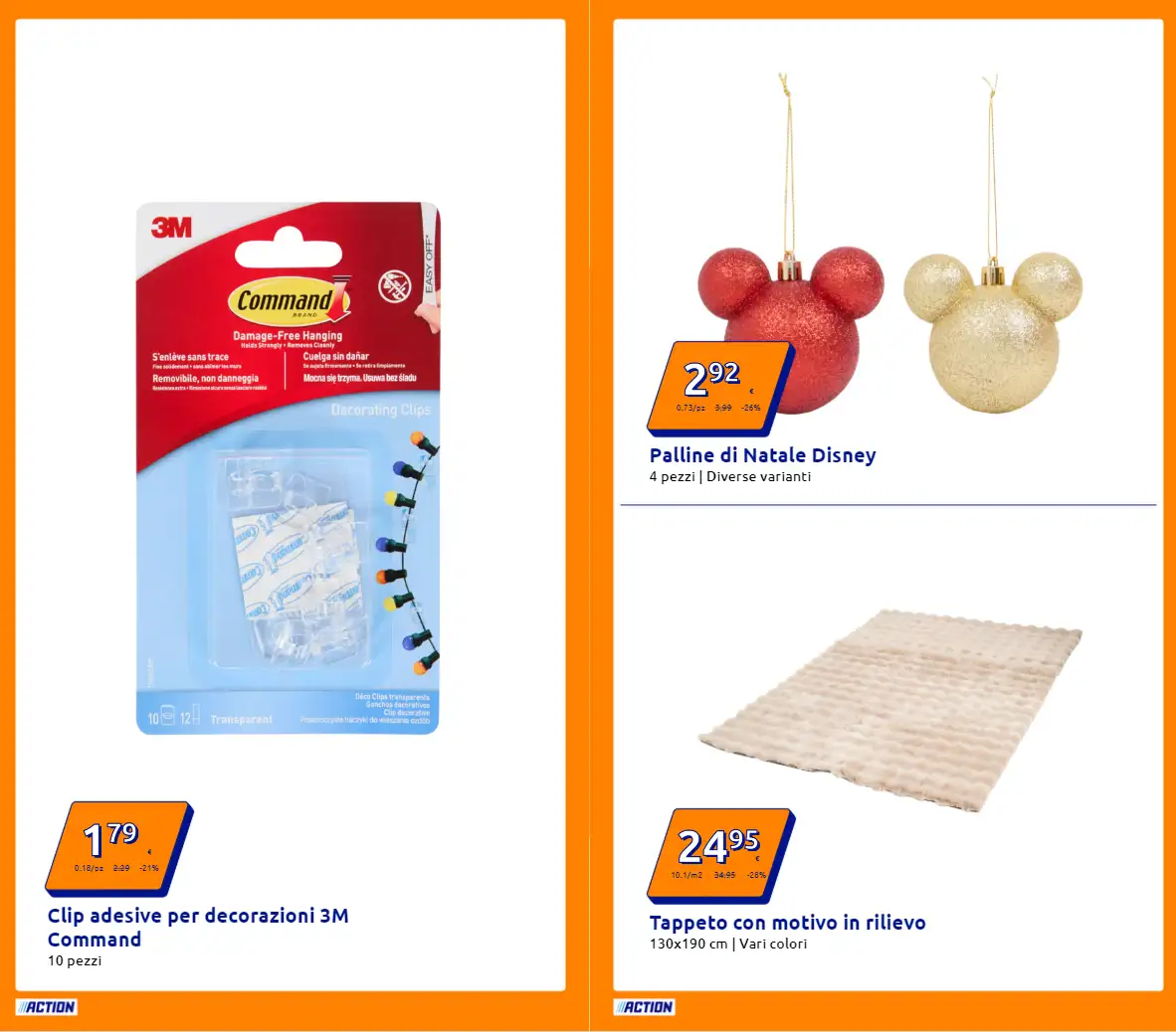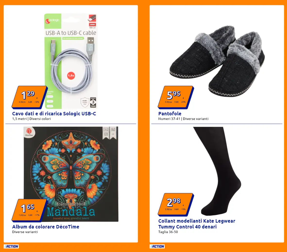 Il nuovo volantino Action è un vero concentrato di offerte vantaggiose su prodotti di ogni genere, dalla cura della persona all’arredo, fino alla tecnologia. Tutte le promozioni sono valide dal 29 ottobre al 4 novembre, salvo esaurimento scorte, nei punti vendita della catena disponibili in tutta Italia.