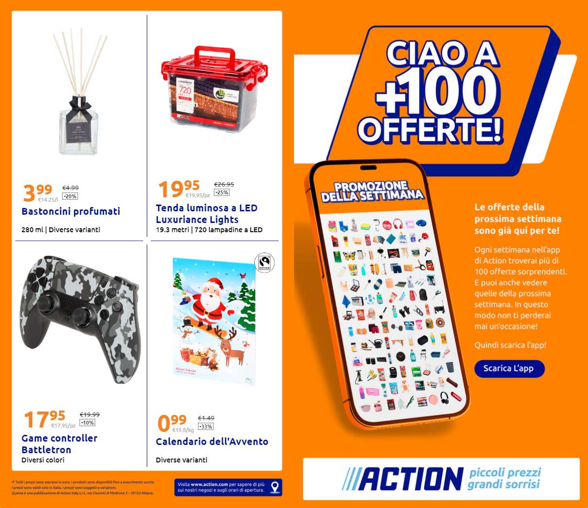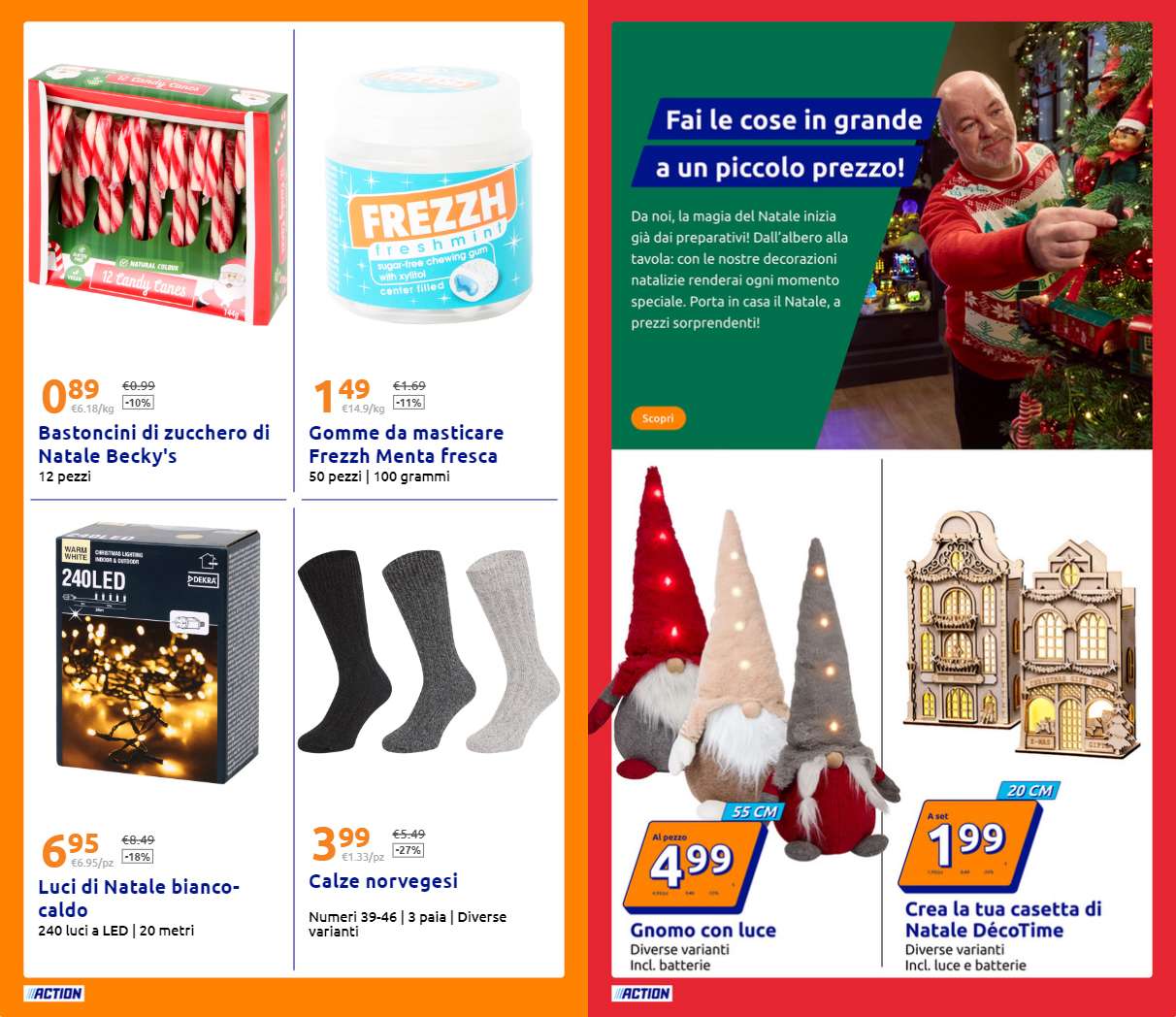 Il nuovo volantino Action settimanale arriva carico di offerte e novità. Focus, c0me è stato nelle scorse settimane (e probabilmente anche quelle a venire) è il Natale, fra decorazioni, luci e idee regalo imperdibili. Il nuovo volantino è attivo da mercoledì 19 a martedì 25 novembre: ecco le migliori offerte.
