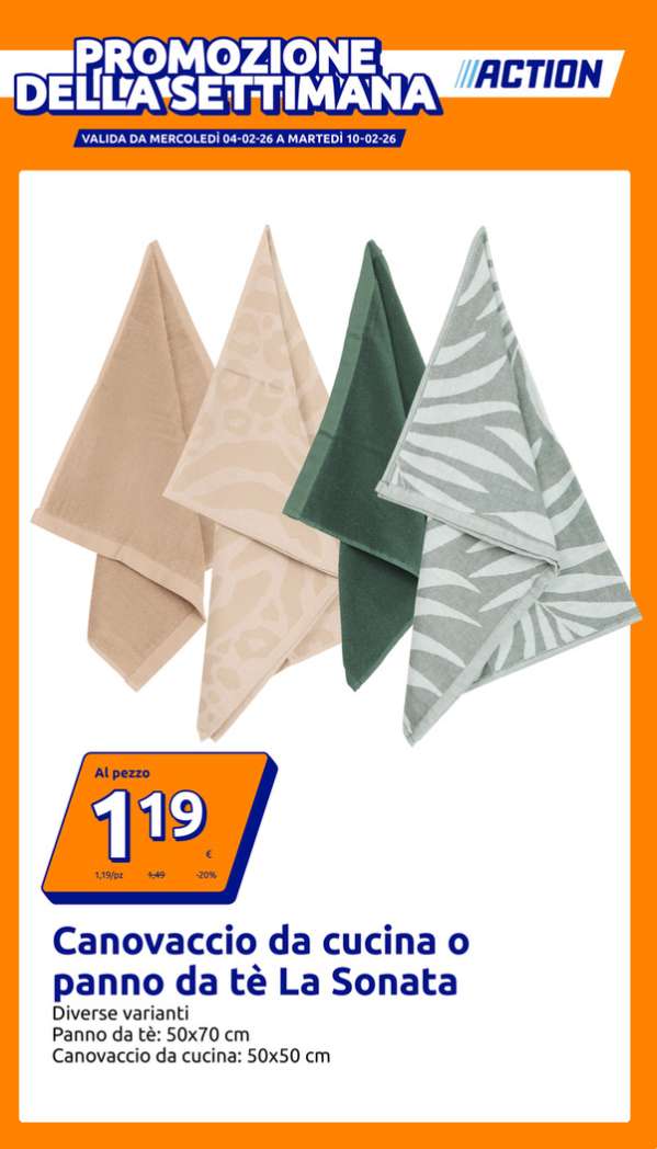 Il volantino Action sarà valido fino al 10 febbraio, nei punti vendita della catena, salvo esaurimento scorte.