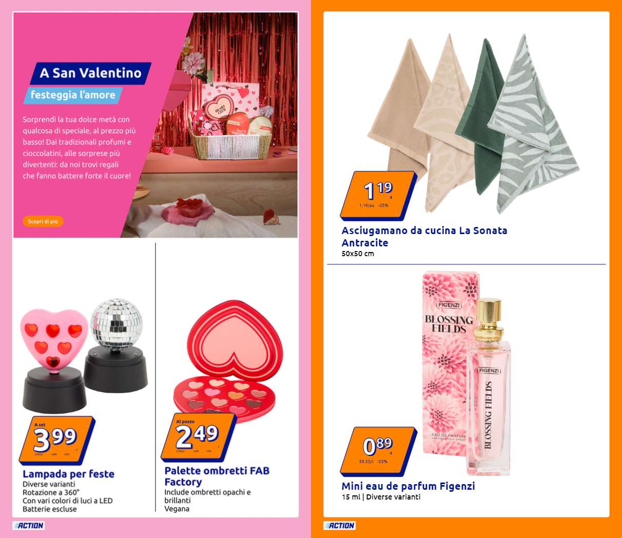 San Valentino, prodotti per la casa, accessori da viaggio e molto altro nel nuovo volantino Action. Le offerte sono attive da oggi, mercoledì 4 febbraio, fino a martedì 10 febbraio, sempre salvo esaurimento scorte. Ecco alcune tra le promozioni più interessanti.