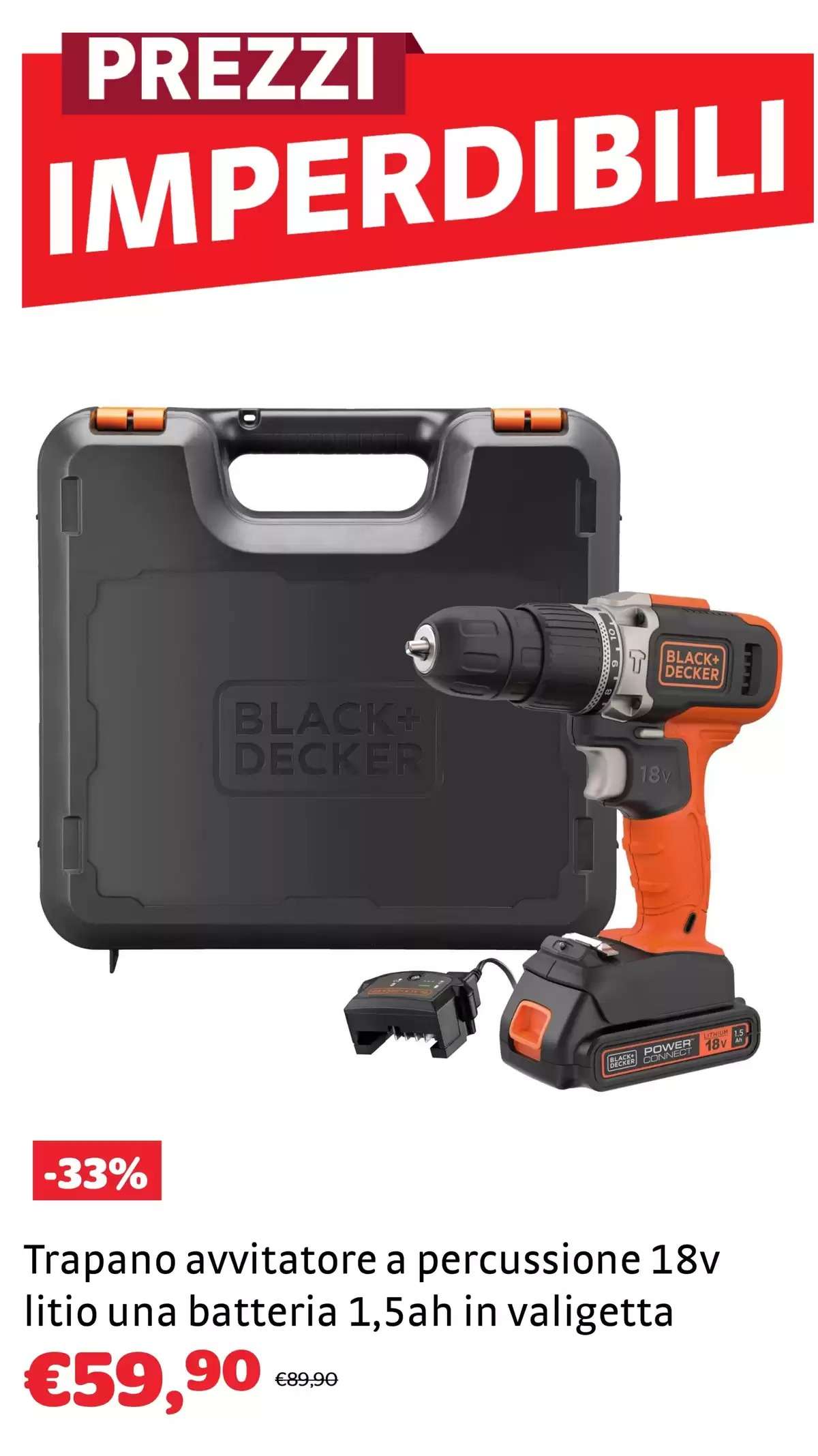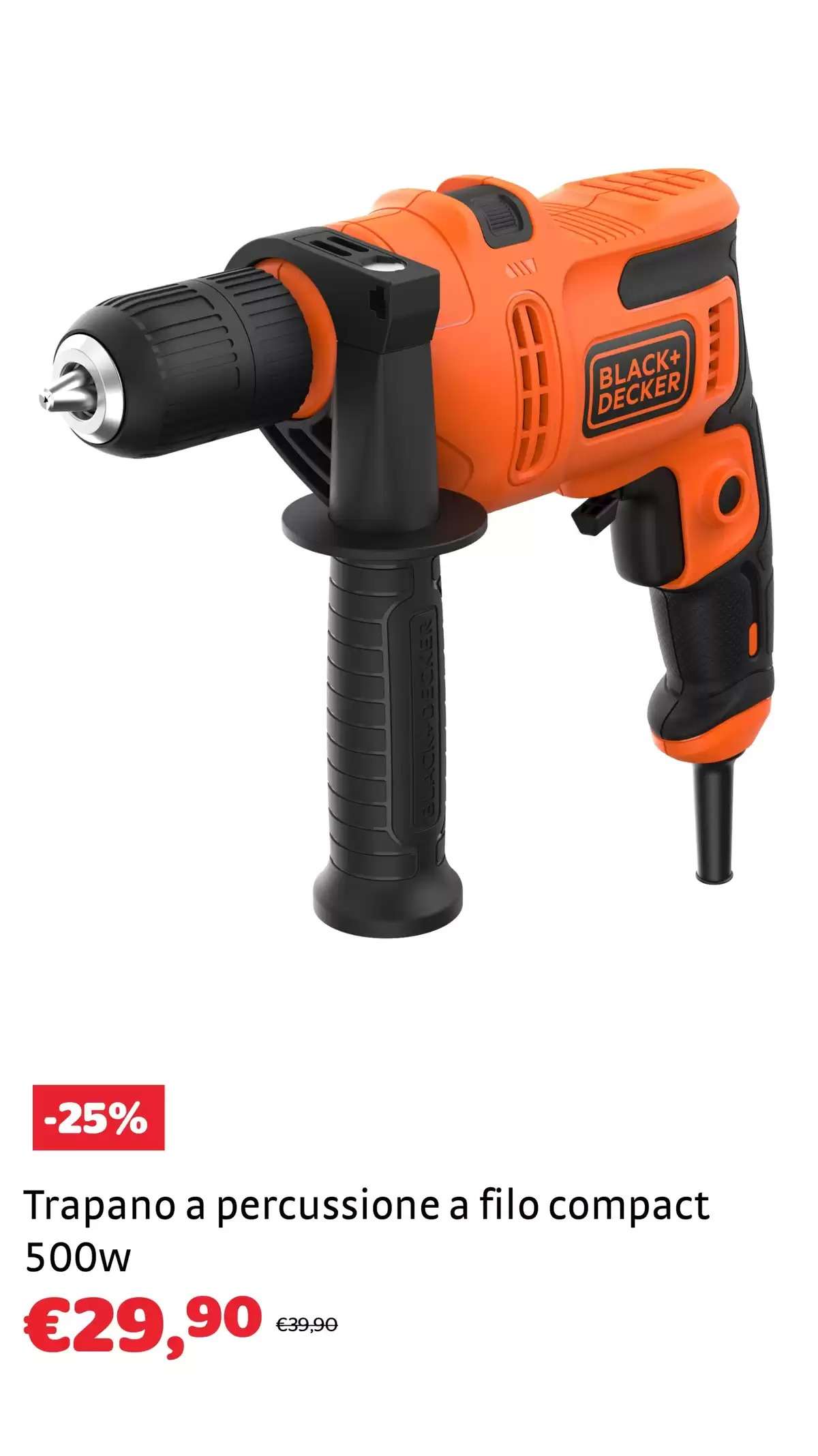 Da Bricocenter troverai anche tante offerte a marchio Black+Decker, tutte a 29,90 euro. Ecco quali: trapano a percussione a filo compact (-25%), levigatrice mouse con aspirazione (-14%), smerigliatrice (-25%), seghetto alternativo (-25%) e levigatrice orbitale (-25%).