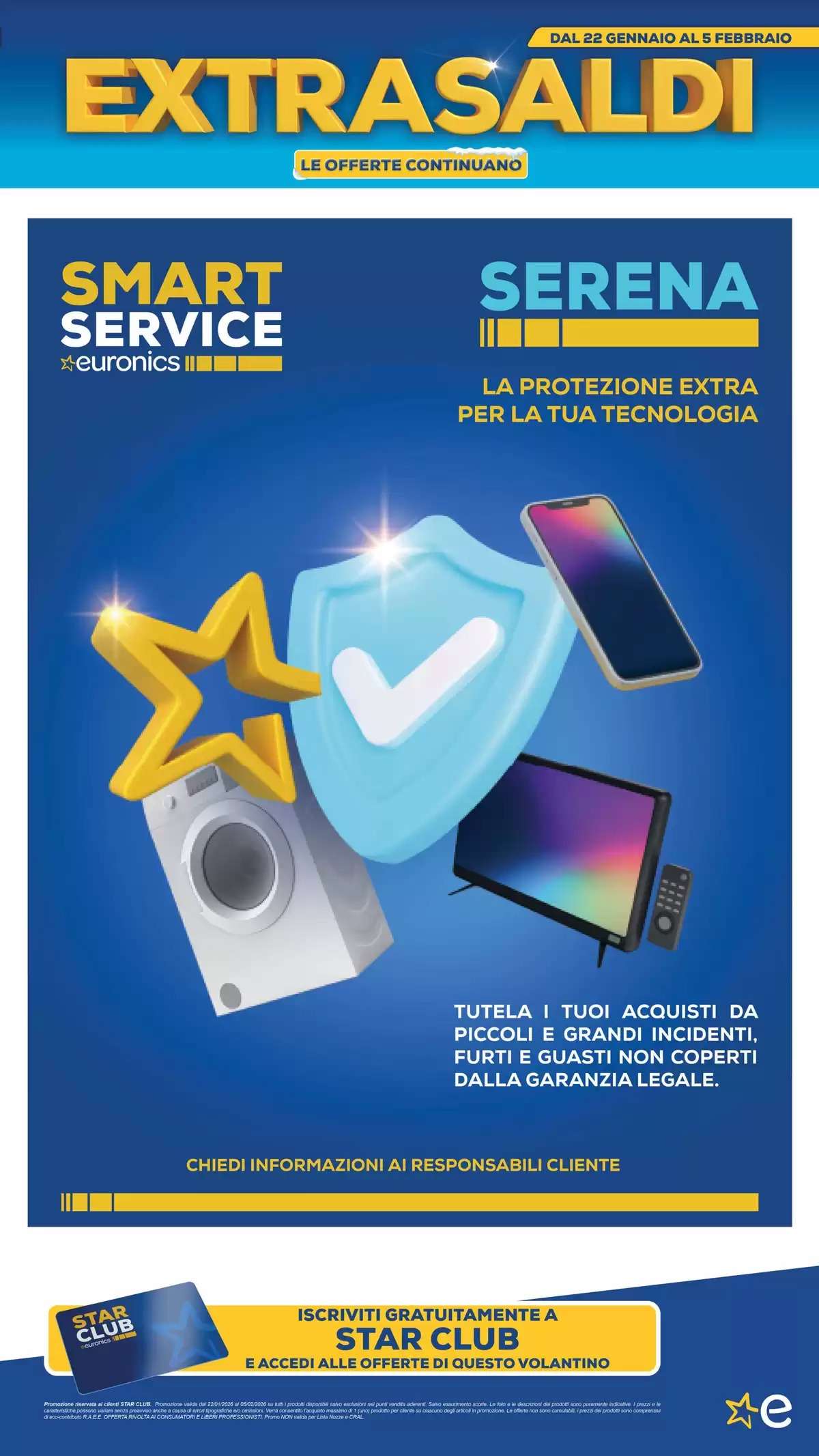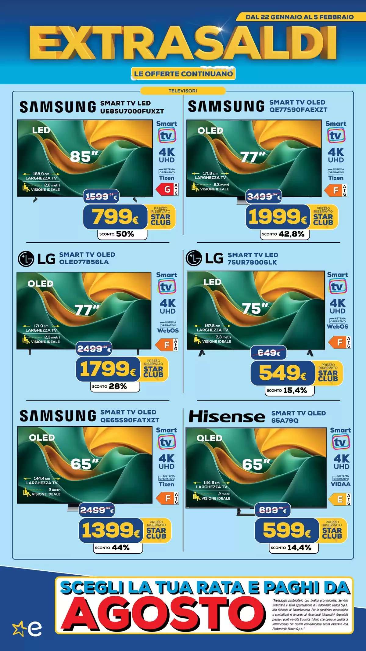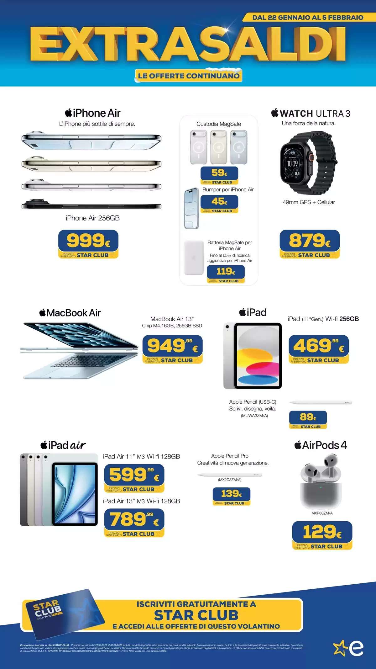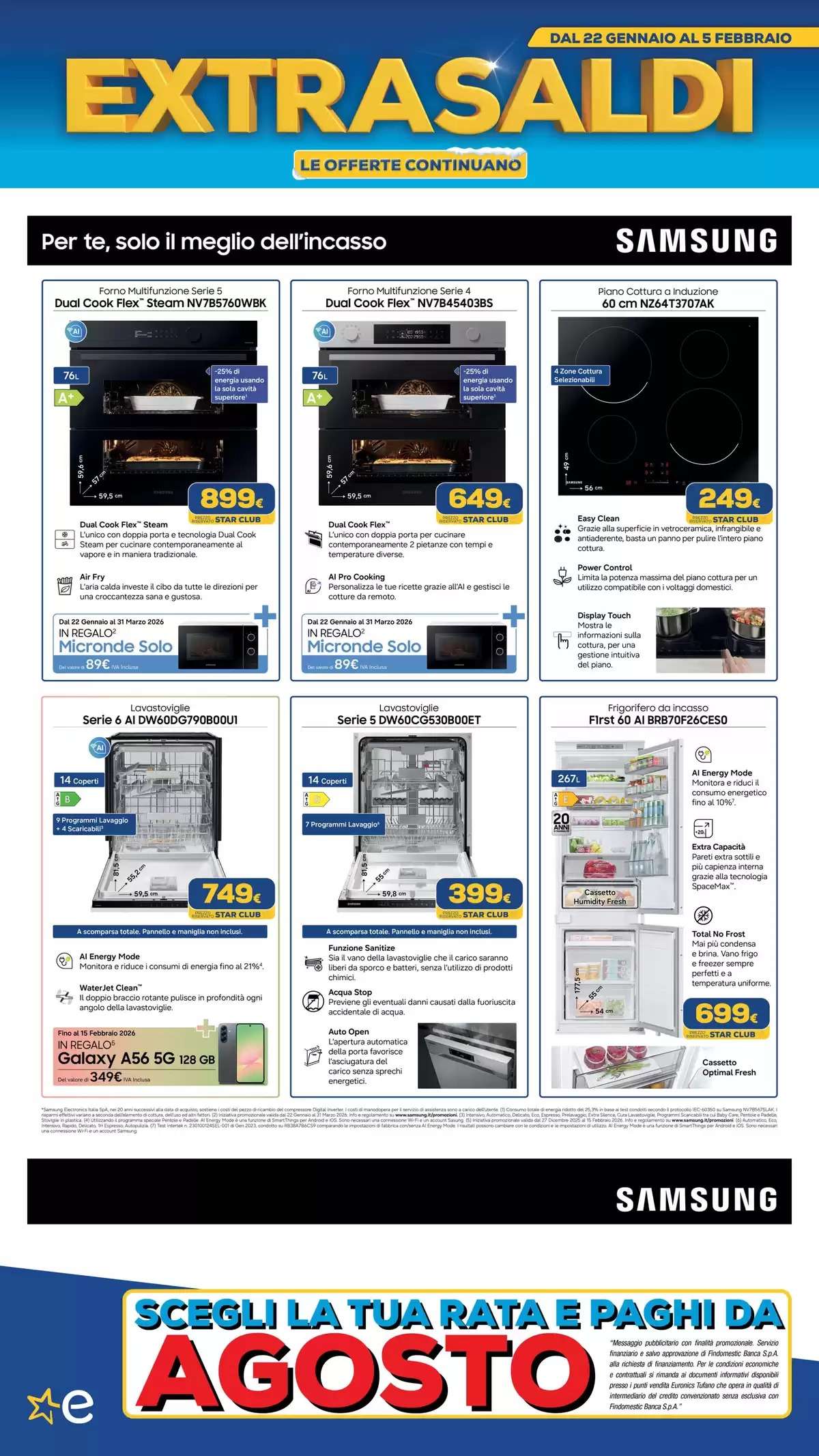 Il volantino Euronics, con tutti gli extrasaldi, saranno disponibili fino al 5 febbraio, online e nei punti vendita fino a esaurimento scorte. La selezione di offerte potrebbe variare in base al negozio scelto.