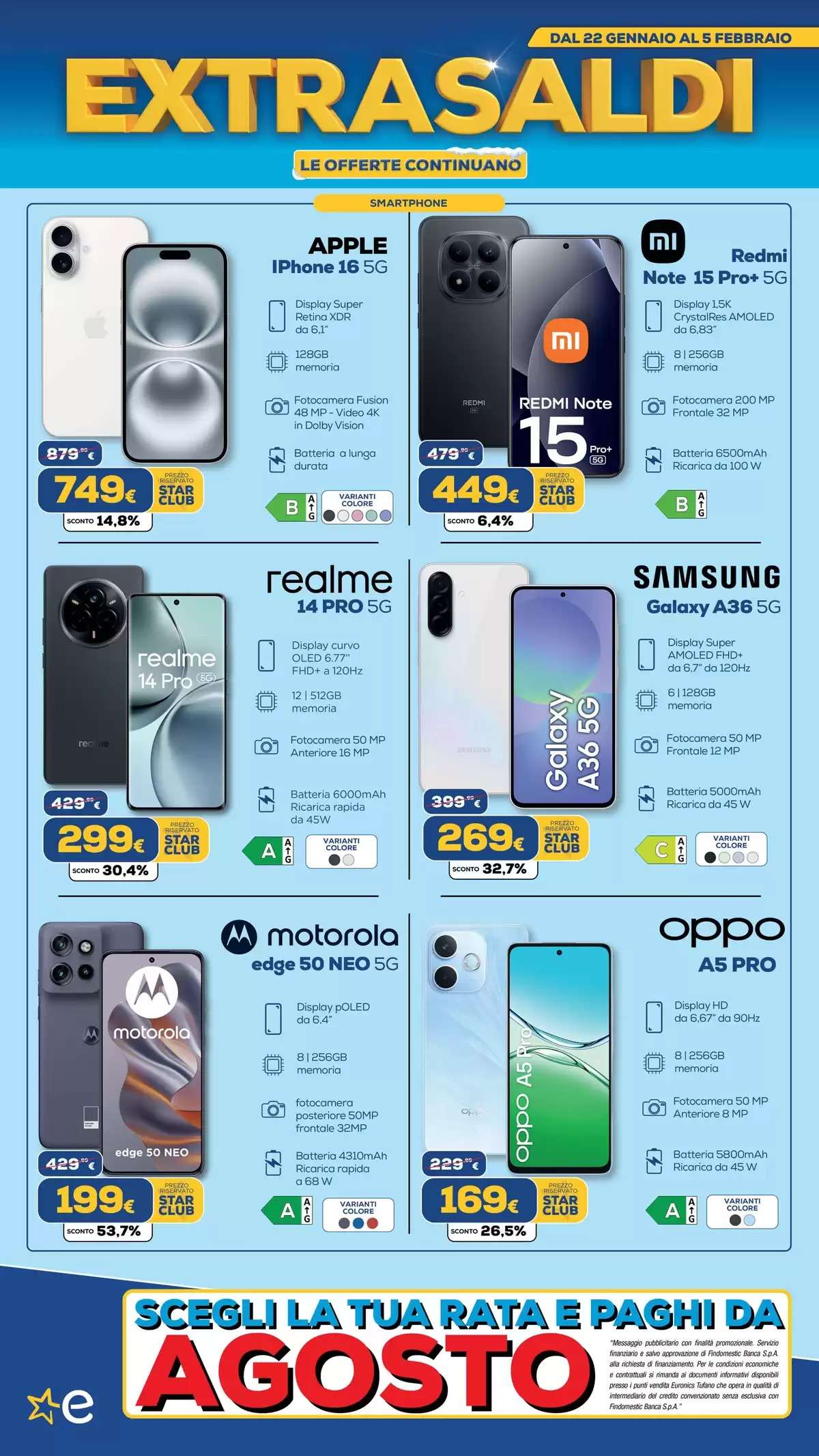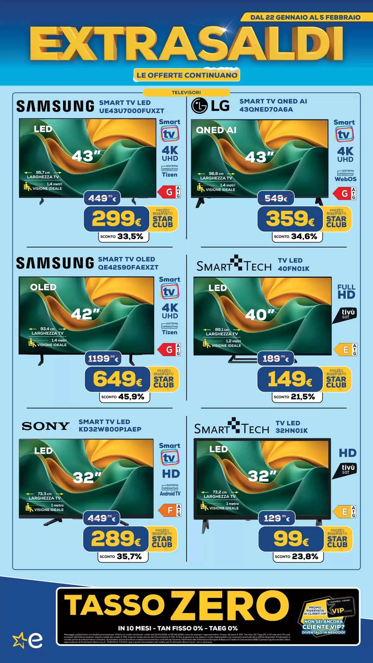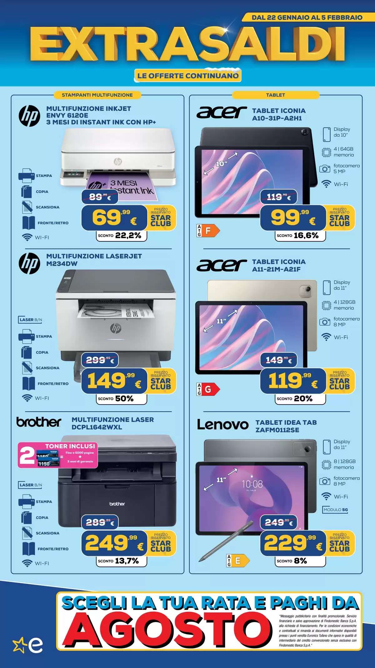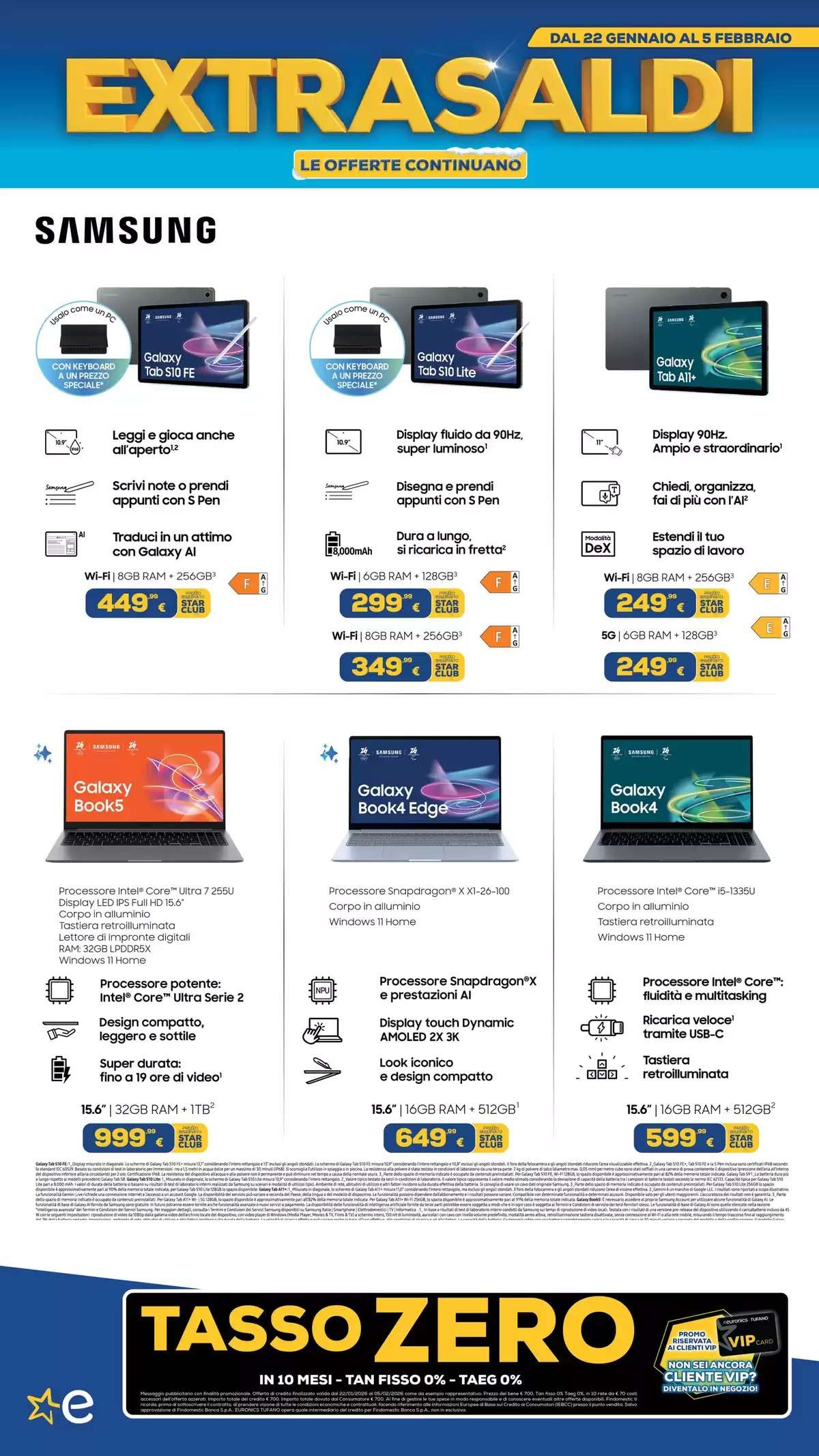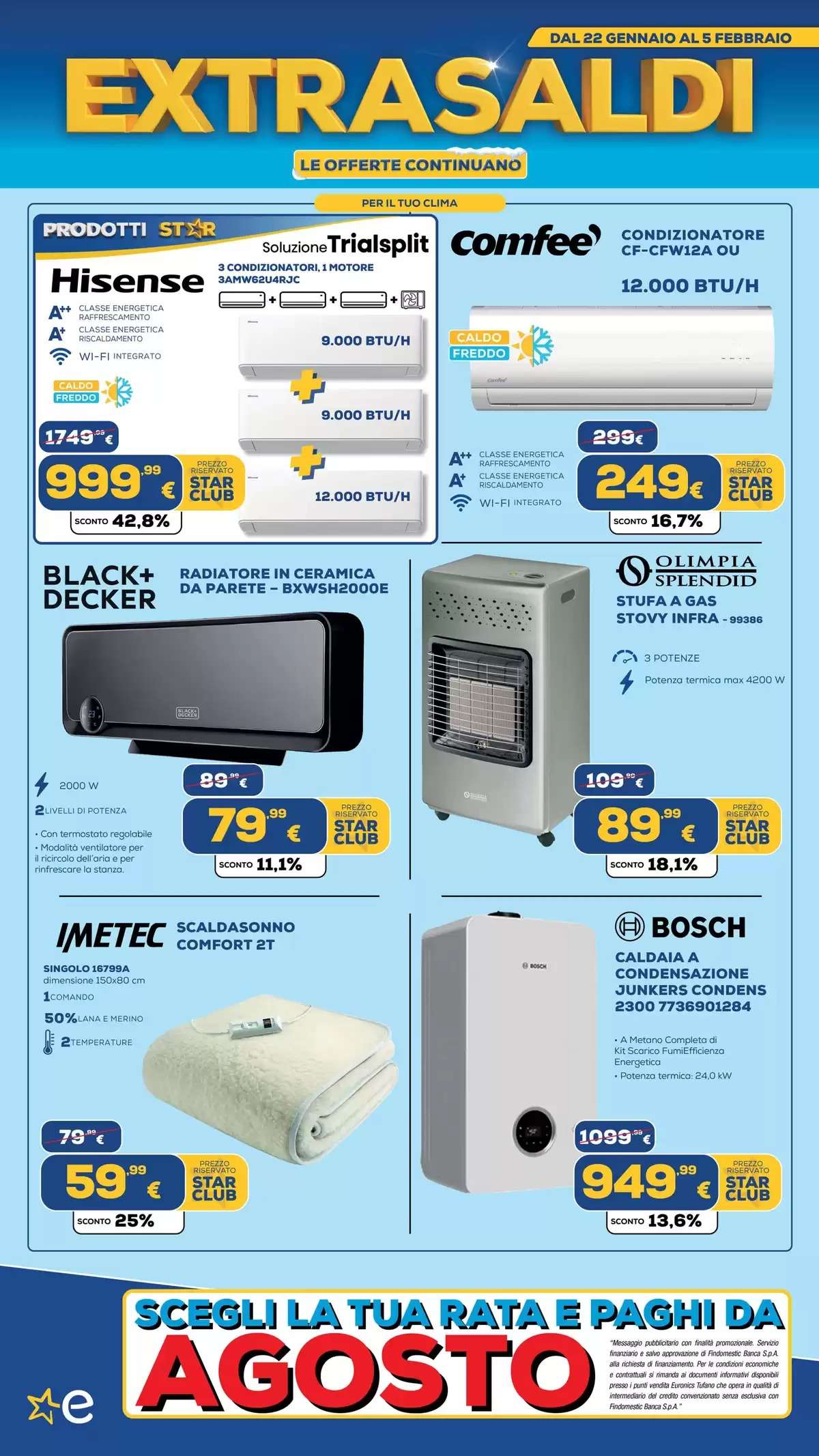 Il volantino Euronics, con tutti gli extrasaldi, saranno disponibili fino al 5 febbraio, online e nei punti vendita fino a esaurimento scorte. La selezione di offerte potrebbe variare in base al negozio scelto.