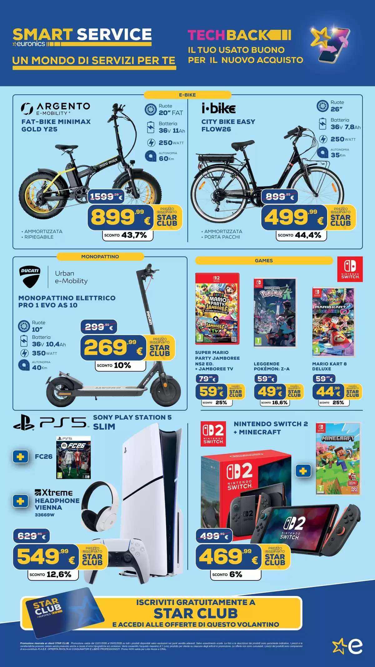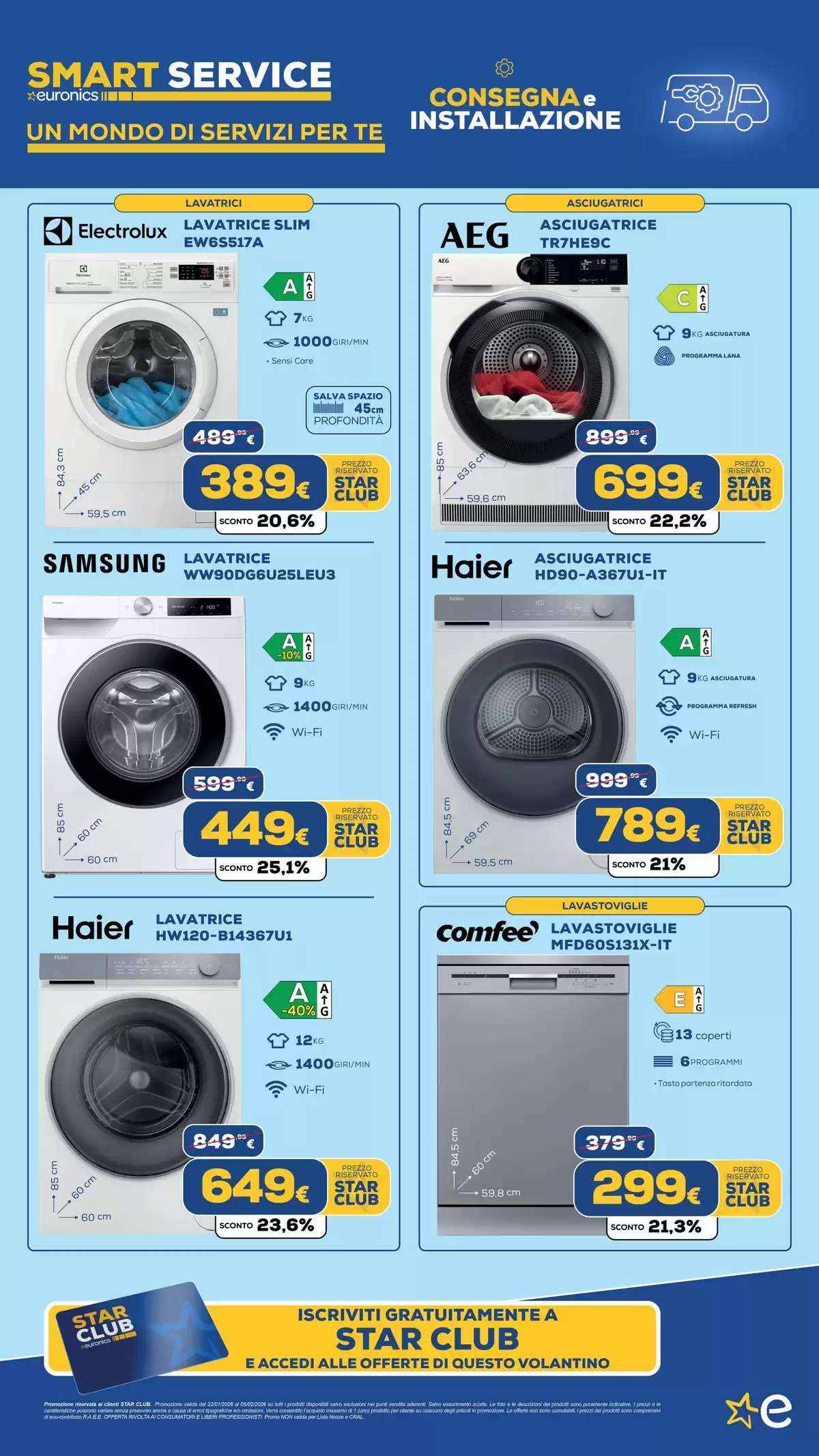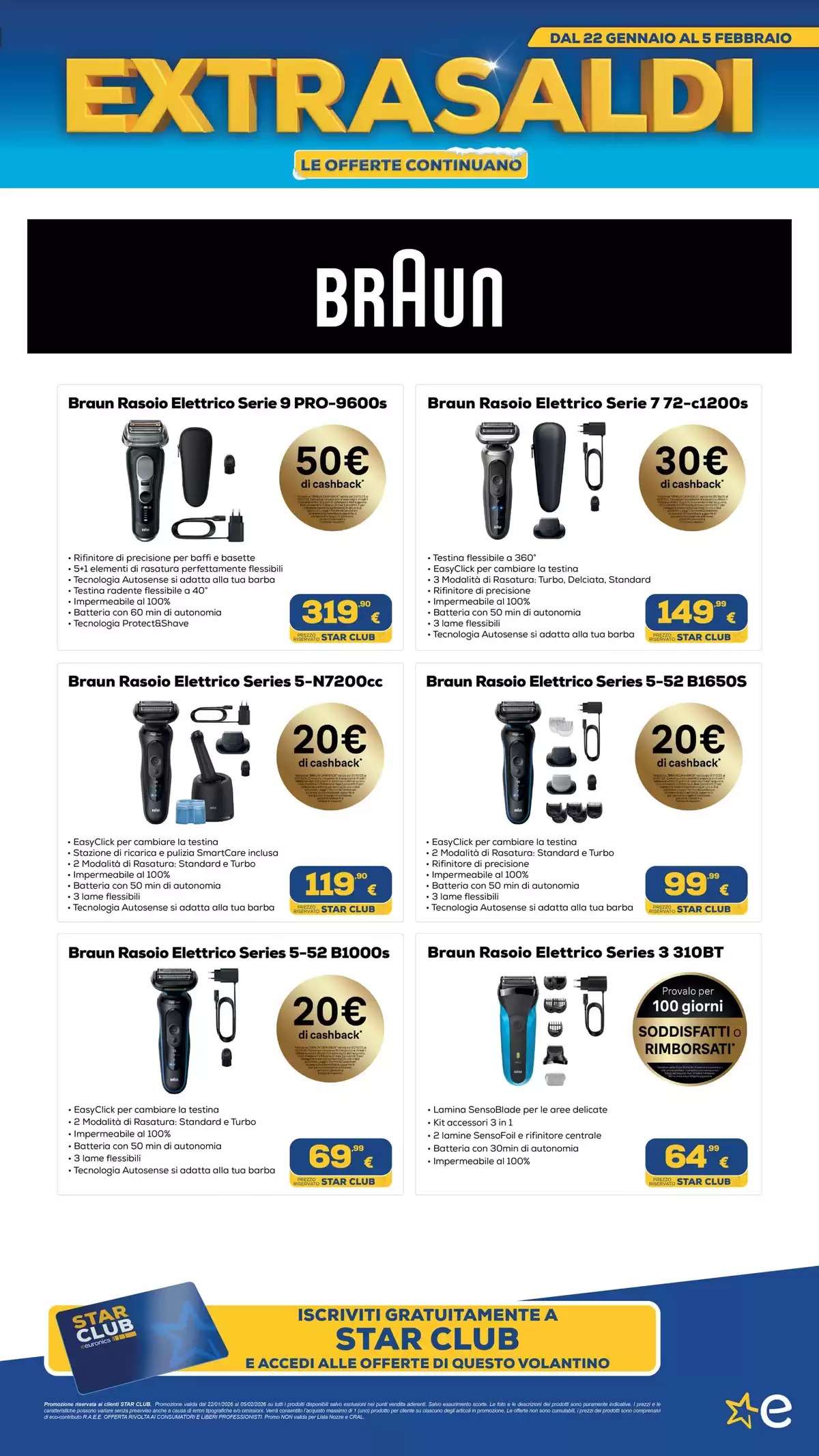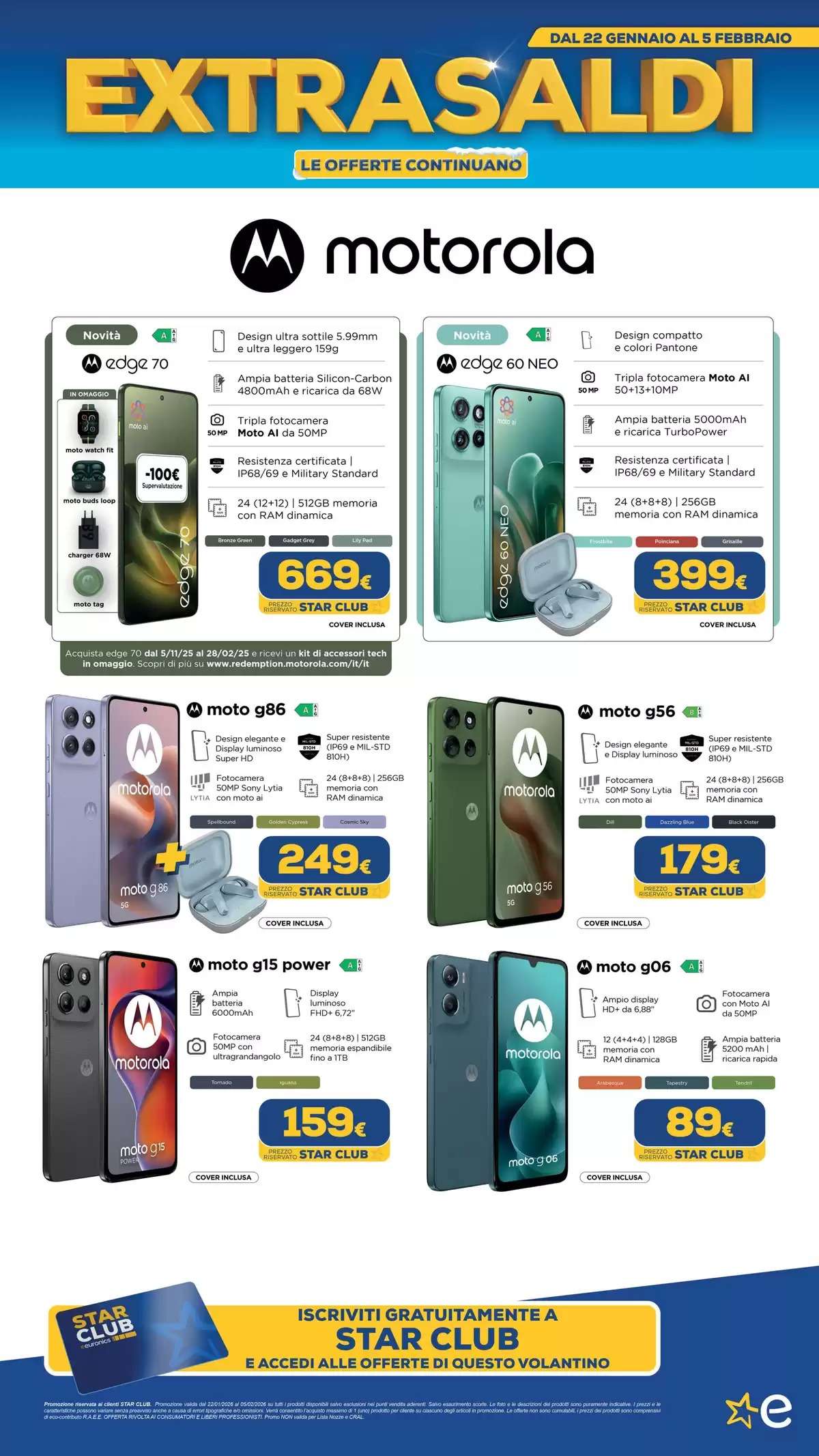 Il volantino Euronics, con tutti gli extrasaldi, saranno disponibili fino al 5 febbraio, online e nei punti vendita fino a esaurimento scorte. La selezione di offerte potrebbe variare in base al negozio scelto.