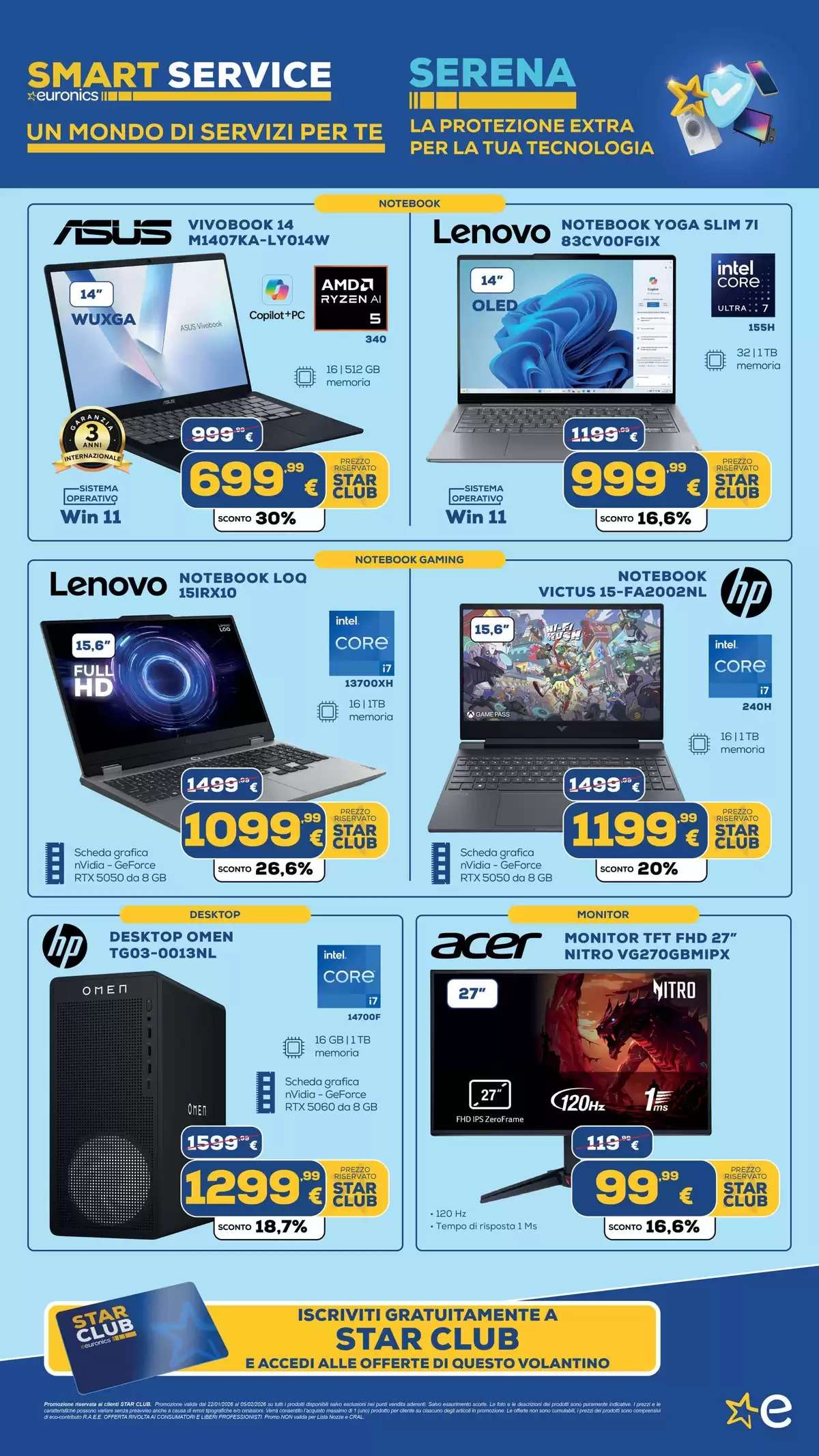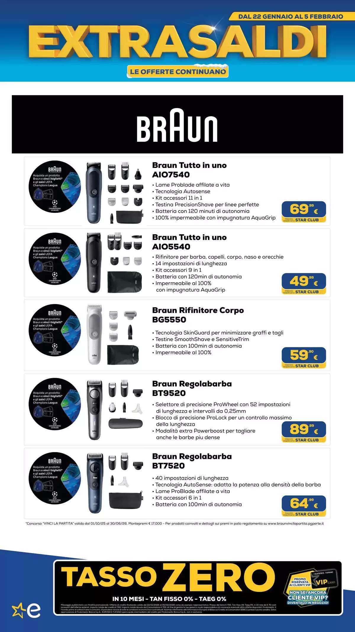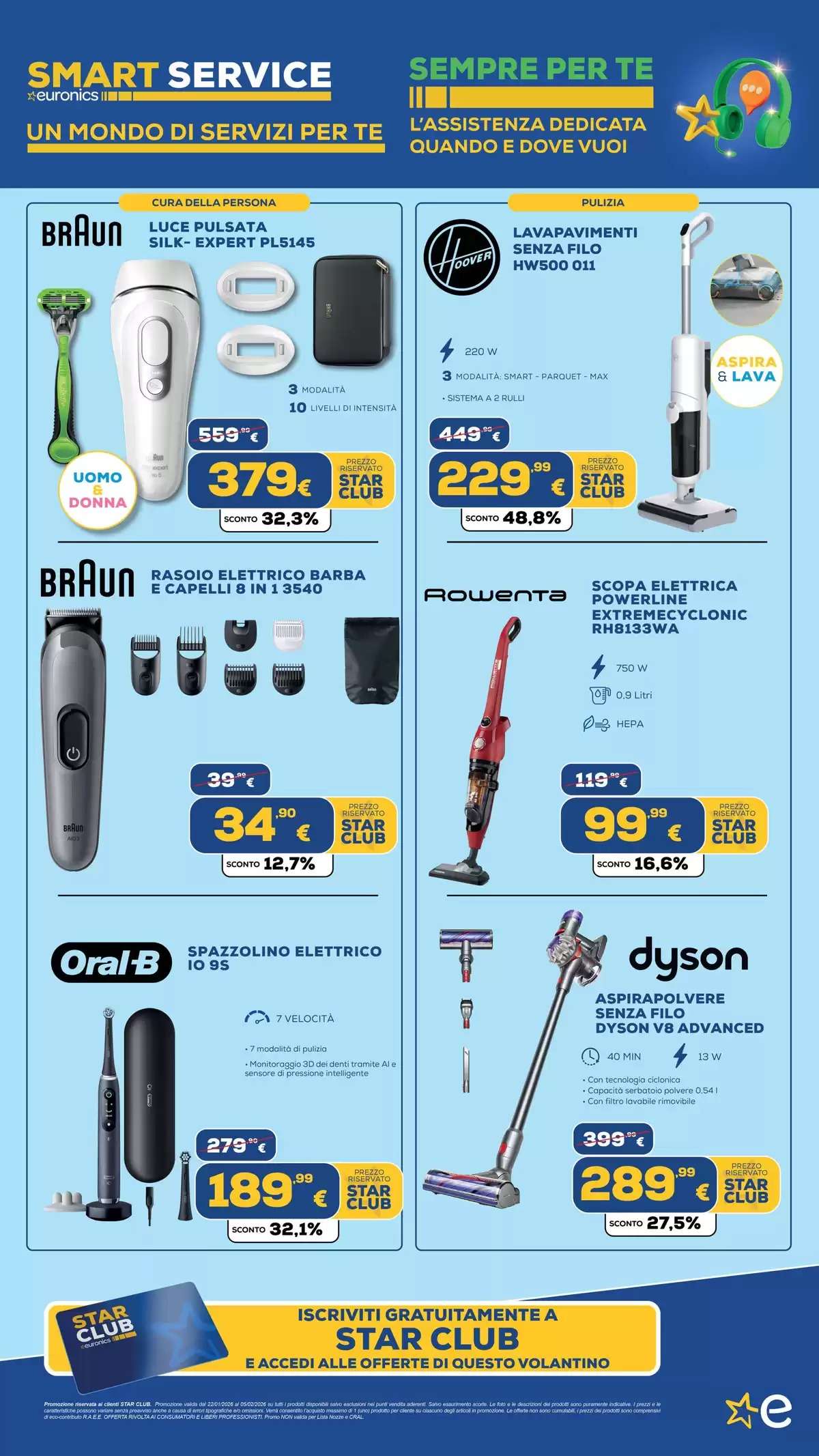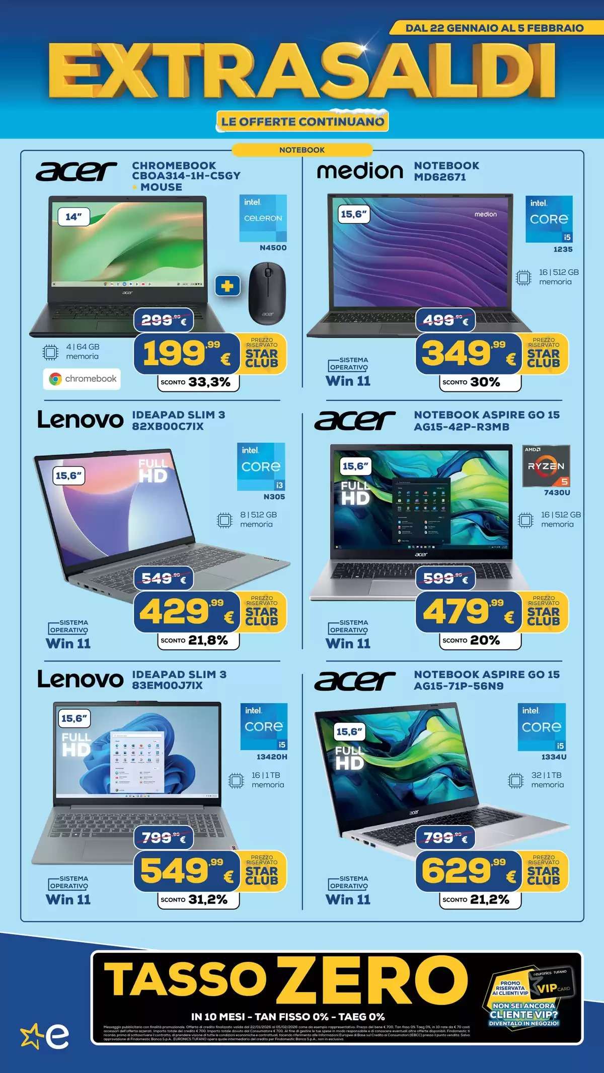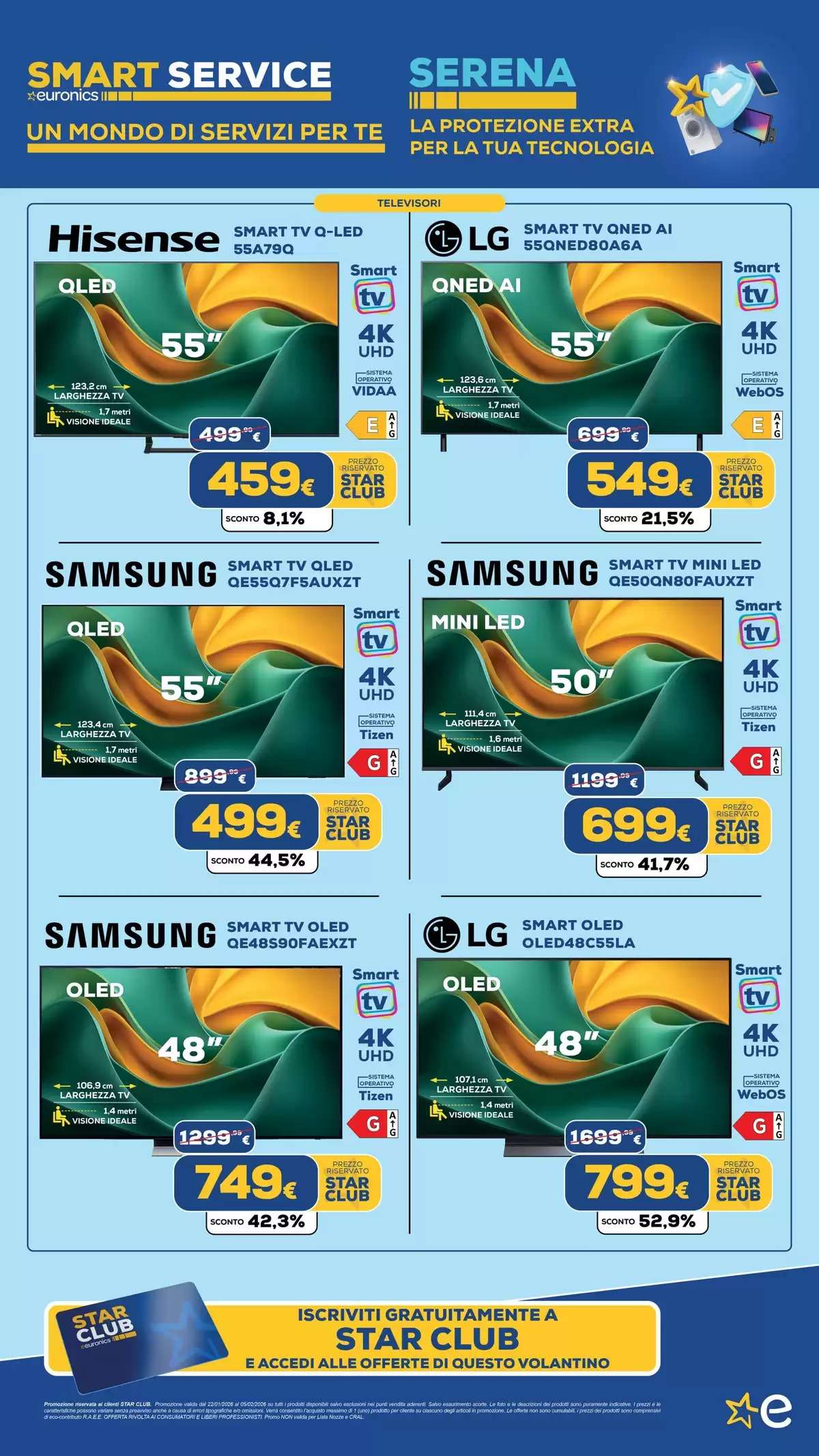 Il volantino Euronics, con tutti gli extrasaldi, saranno disponibili fino al 5 febbraio, online e nei punti vendita fino a esaurimento scorte. La selezione di offerte potrebbe variare in base al negozio scelto.