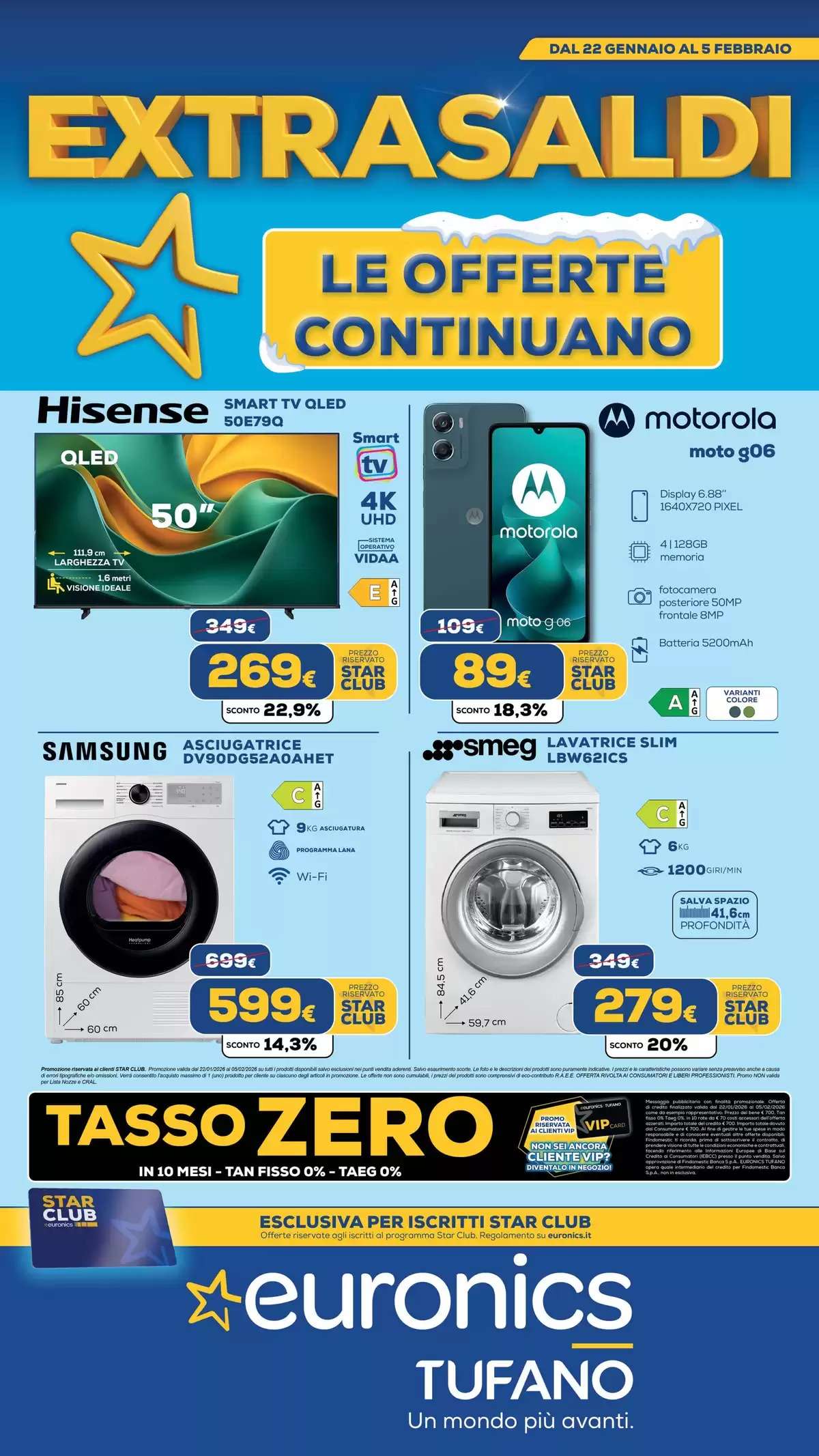 Extrasaldi, offerte e tasso zero: da Euronics è tempo di risparmi con il nuovo volantino valido fino al 5 febbraio. Tante occasioni di risparmio sul meglio dell’elettronica (smartphone, tablet, laptop…), senza dimenticare grandi e piccoli elettrodomestici. Le offerte sono riservate agli iscritti al programma Star Club di Euronics, gratuito.