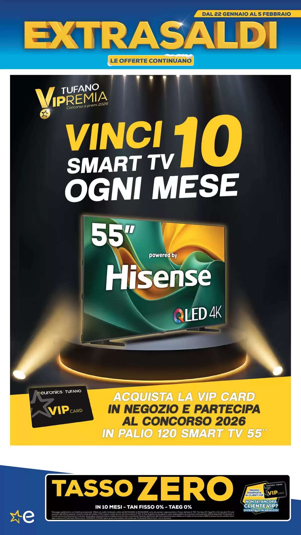 I clienti VIP potranno approfittare anche delle opzioni di finanziamento a tasso zero in 10 mesi, con TAN fisso 0% e TAEG 0%. Ecco tutte le offerte Euronics: