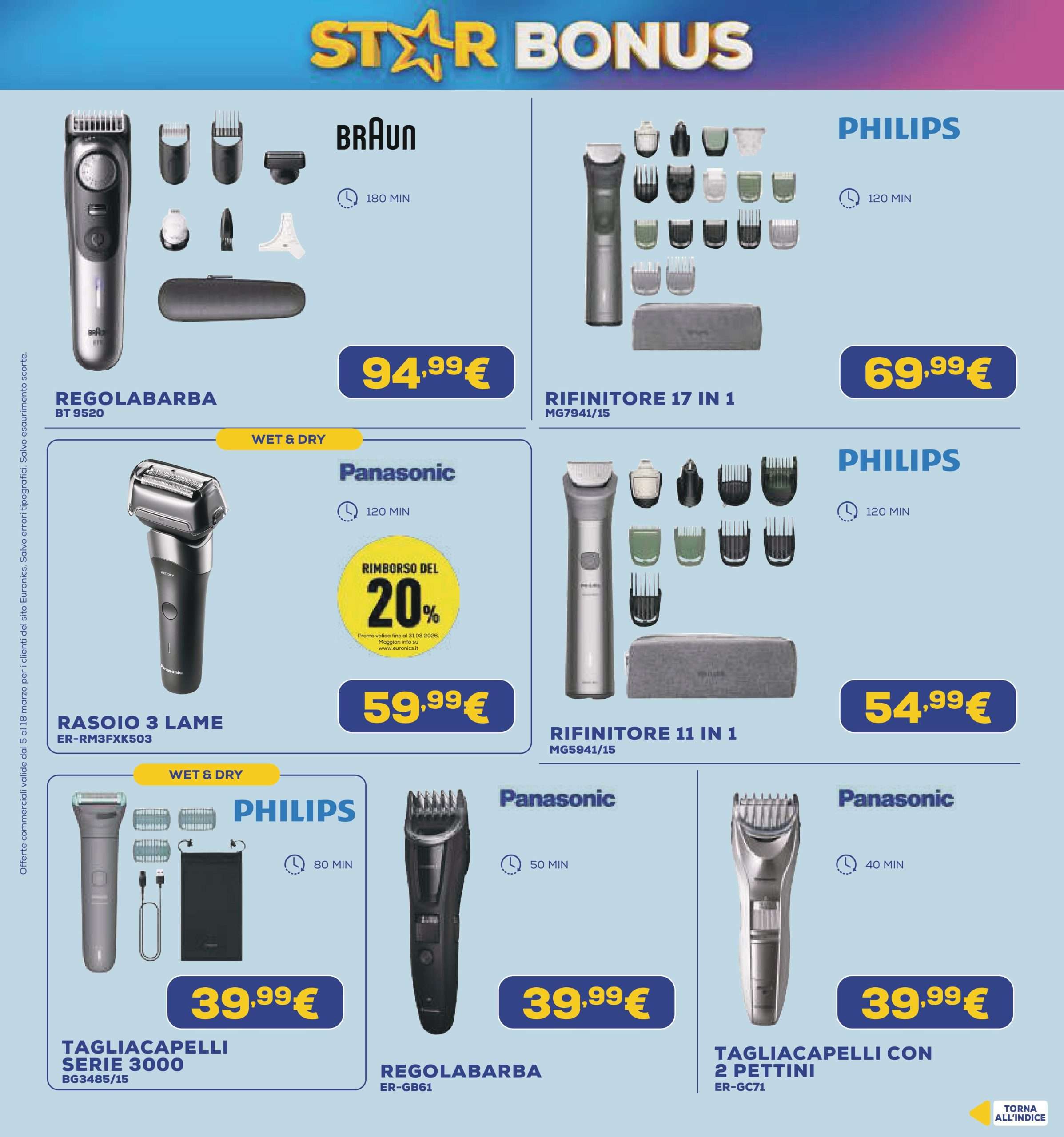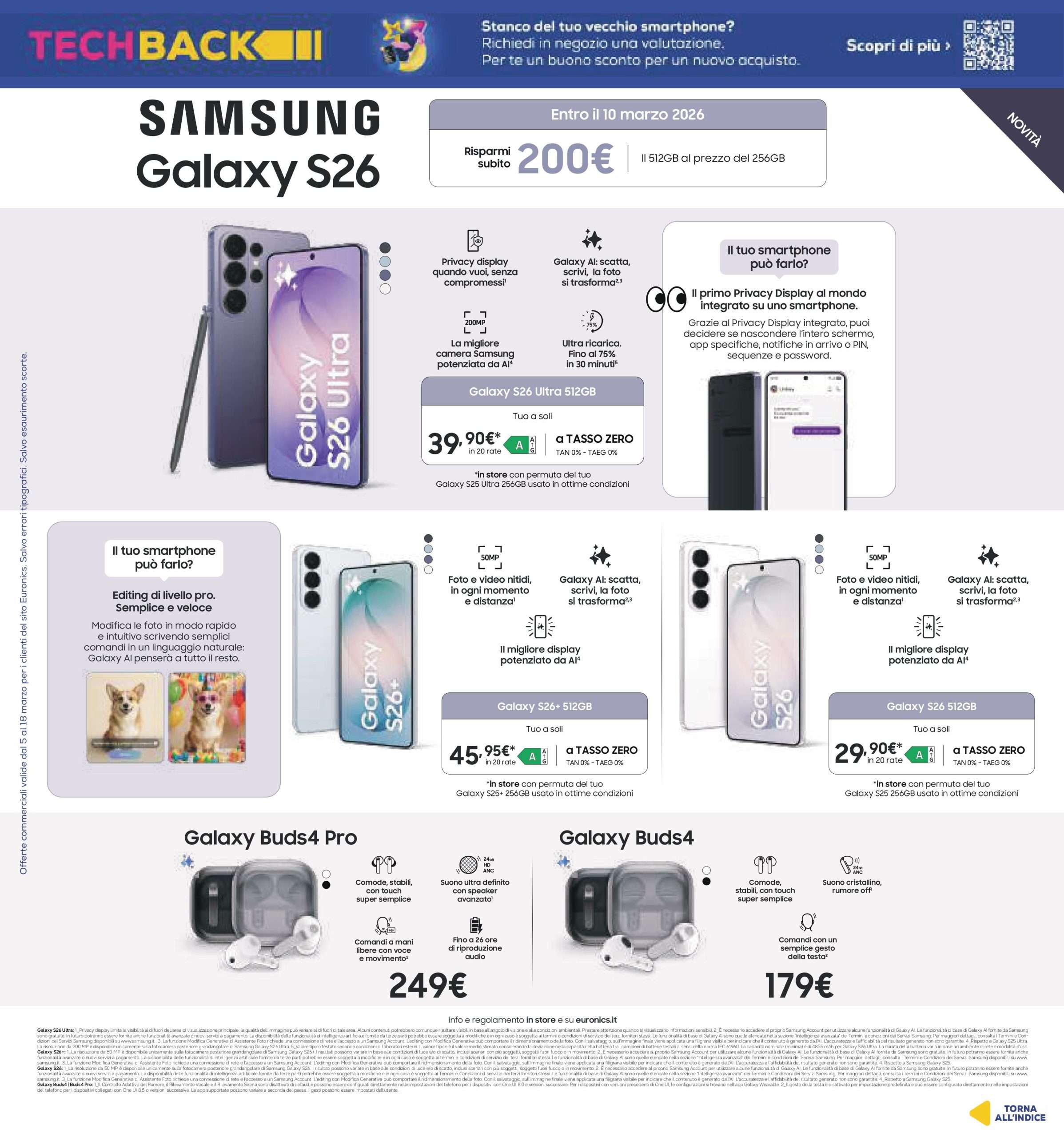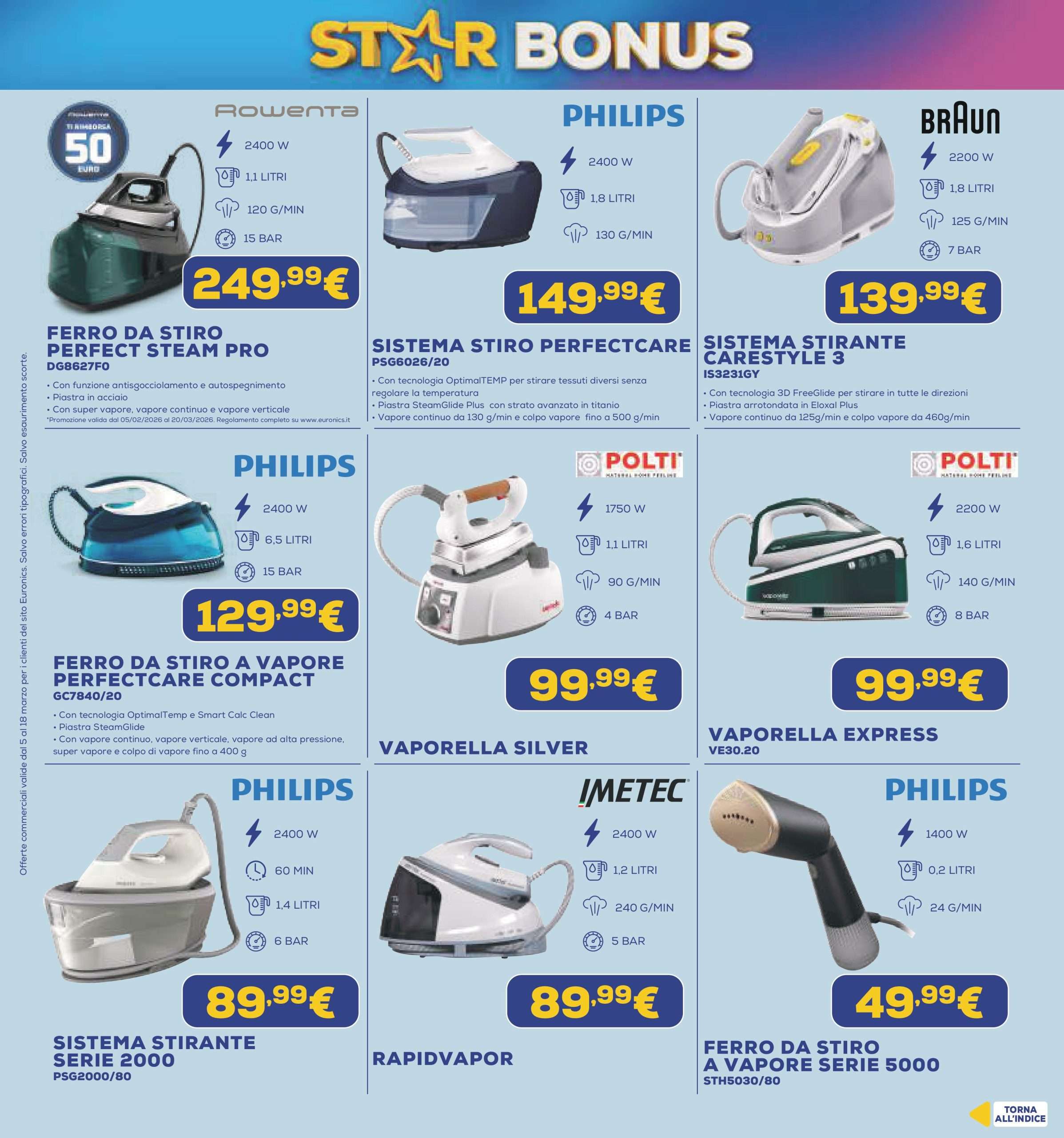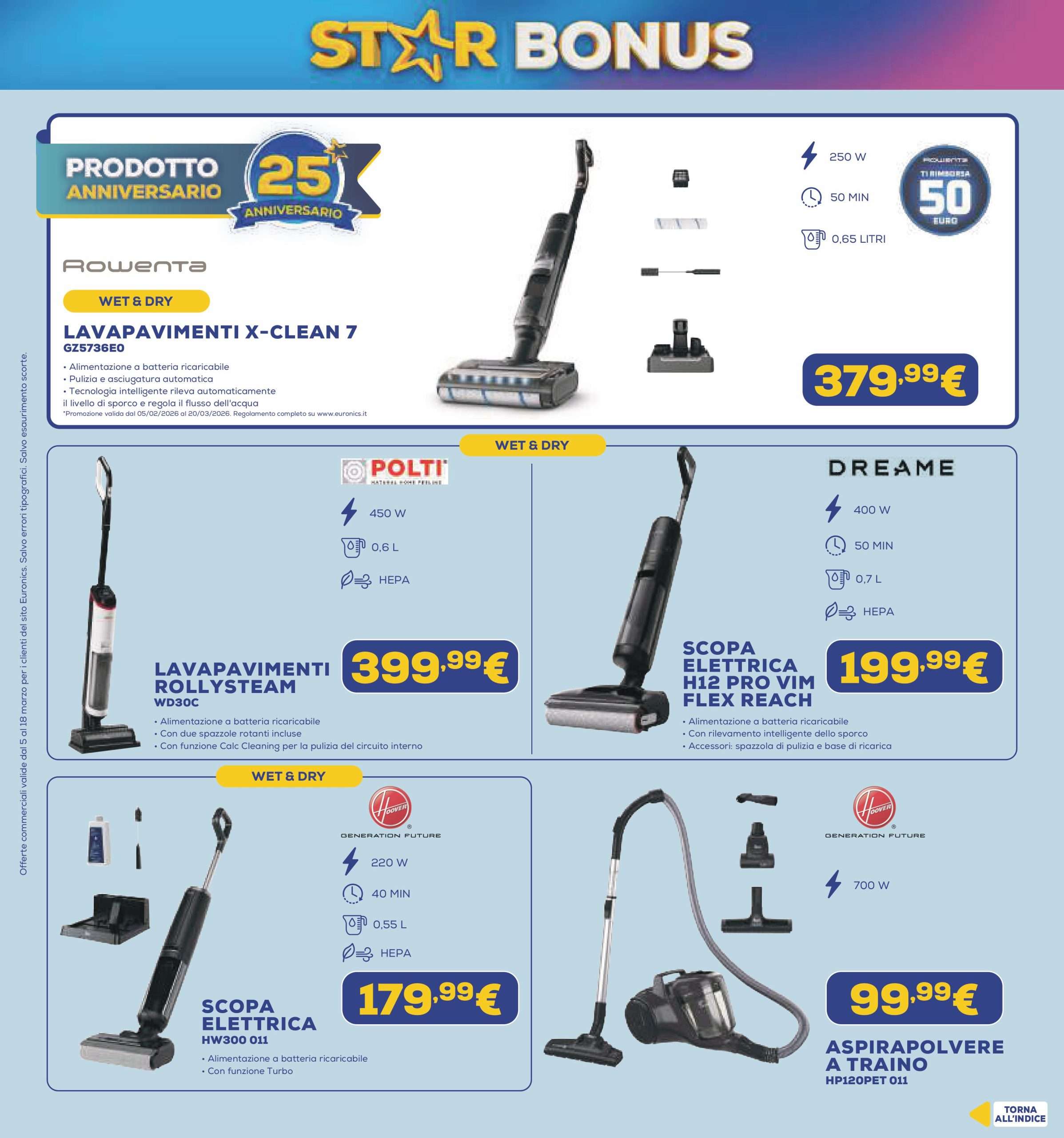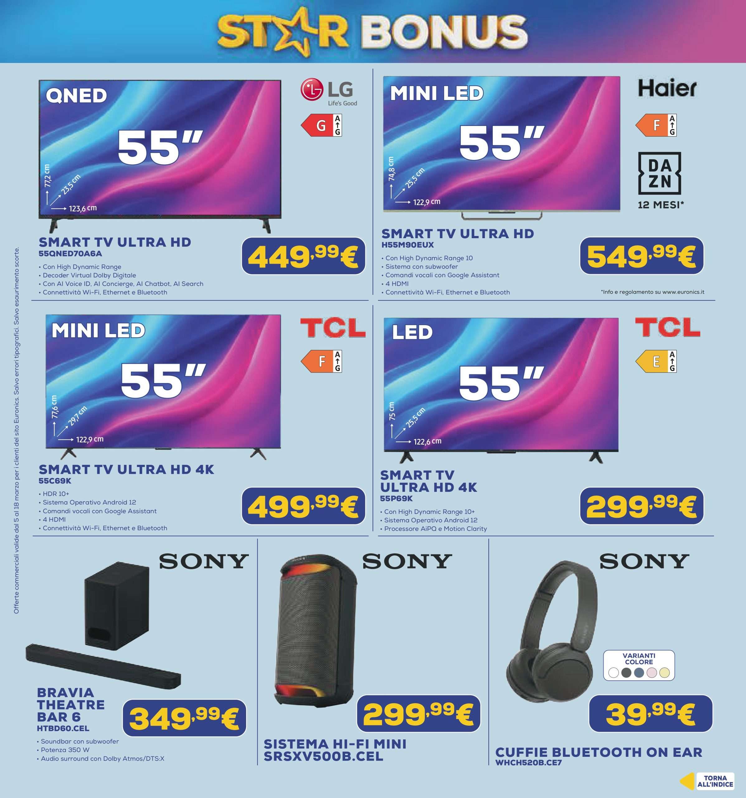 Il volantino Euronics Star Bonus sarà attivo nei punti vendita fino al 18 marzo, salvo esaurimento scorte.