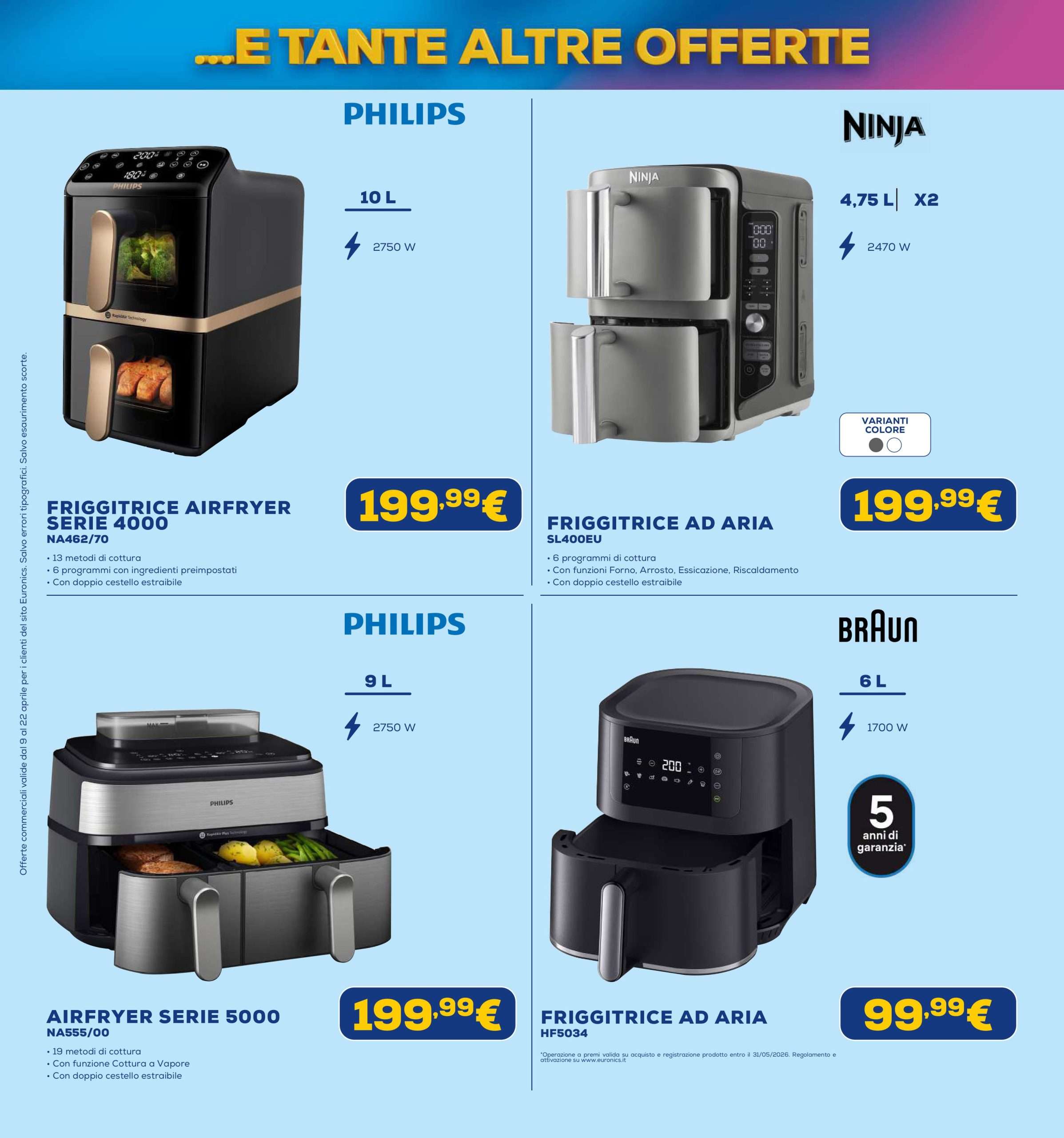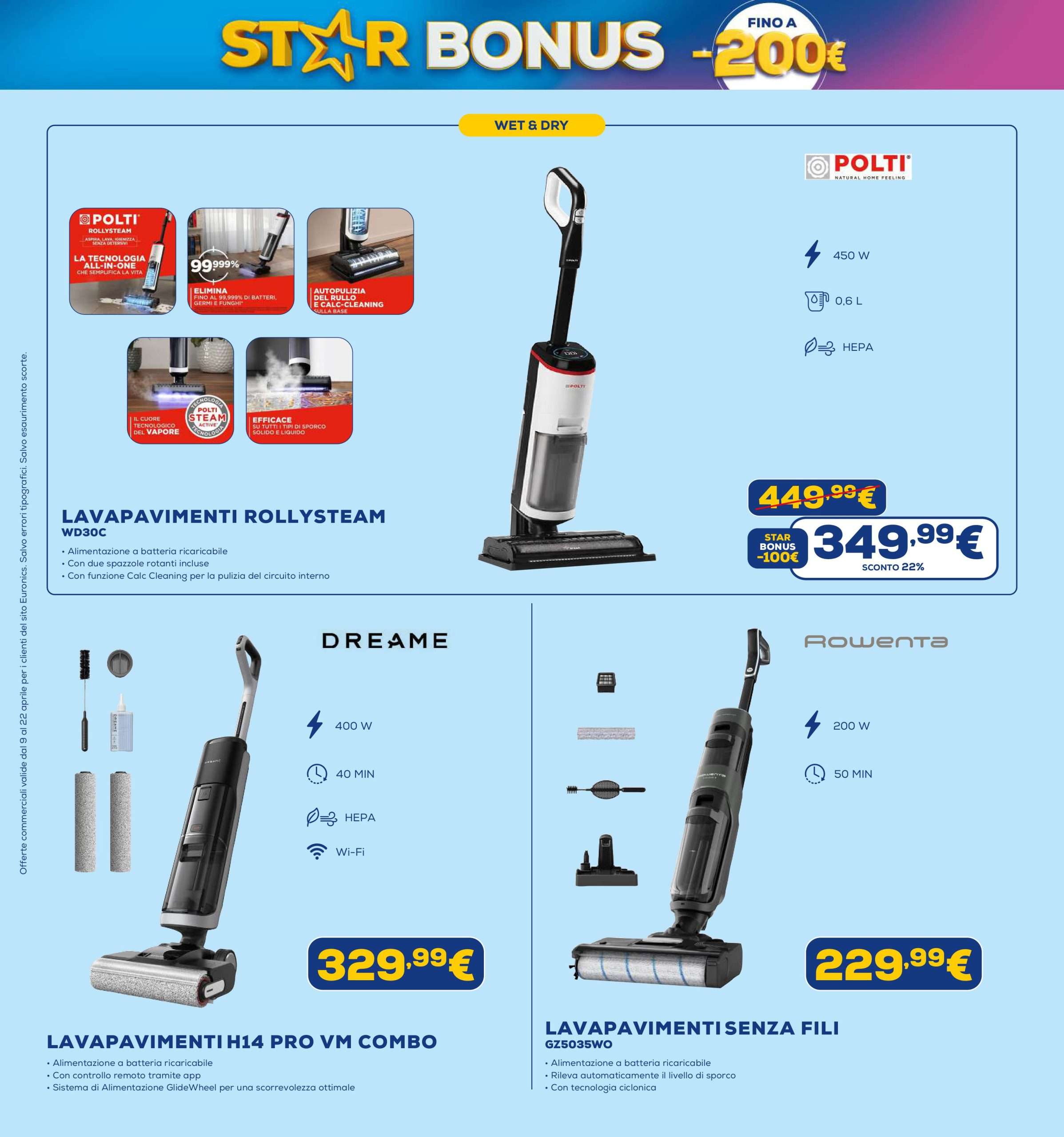 Il nuovo volantino Euronics Star Bonus sarà attivo nei punti vendita fino al 22 aprile, con tanti sconti fino a 200 euro, salvo esaurimento scorte.