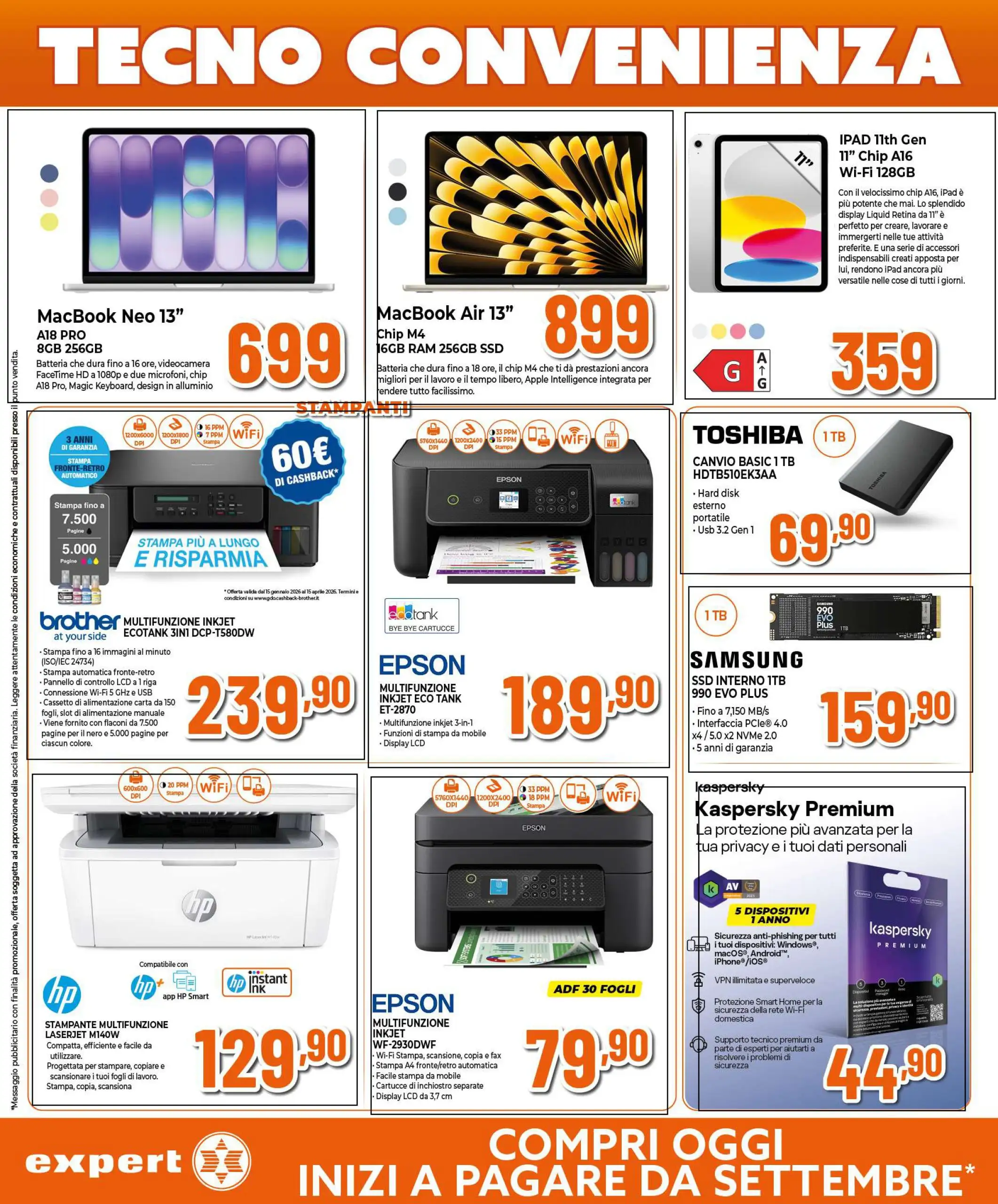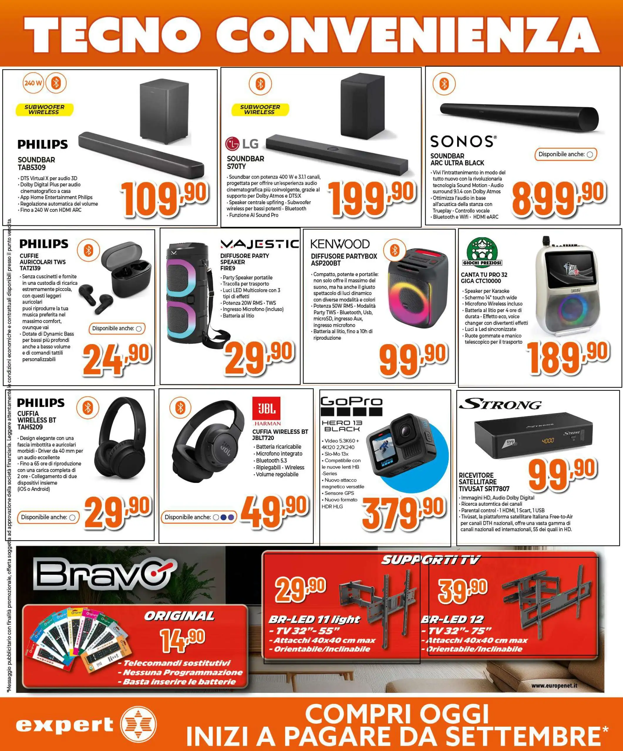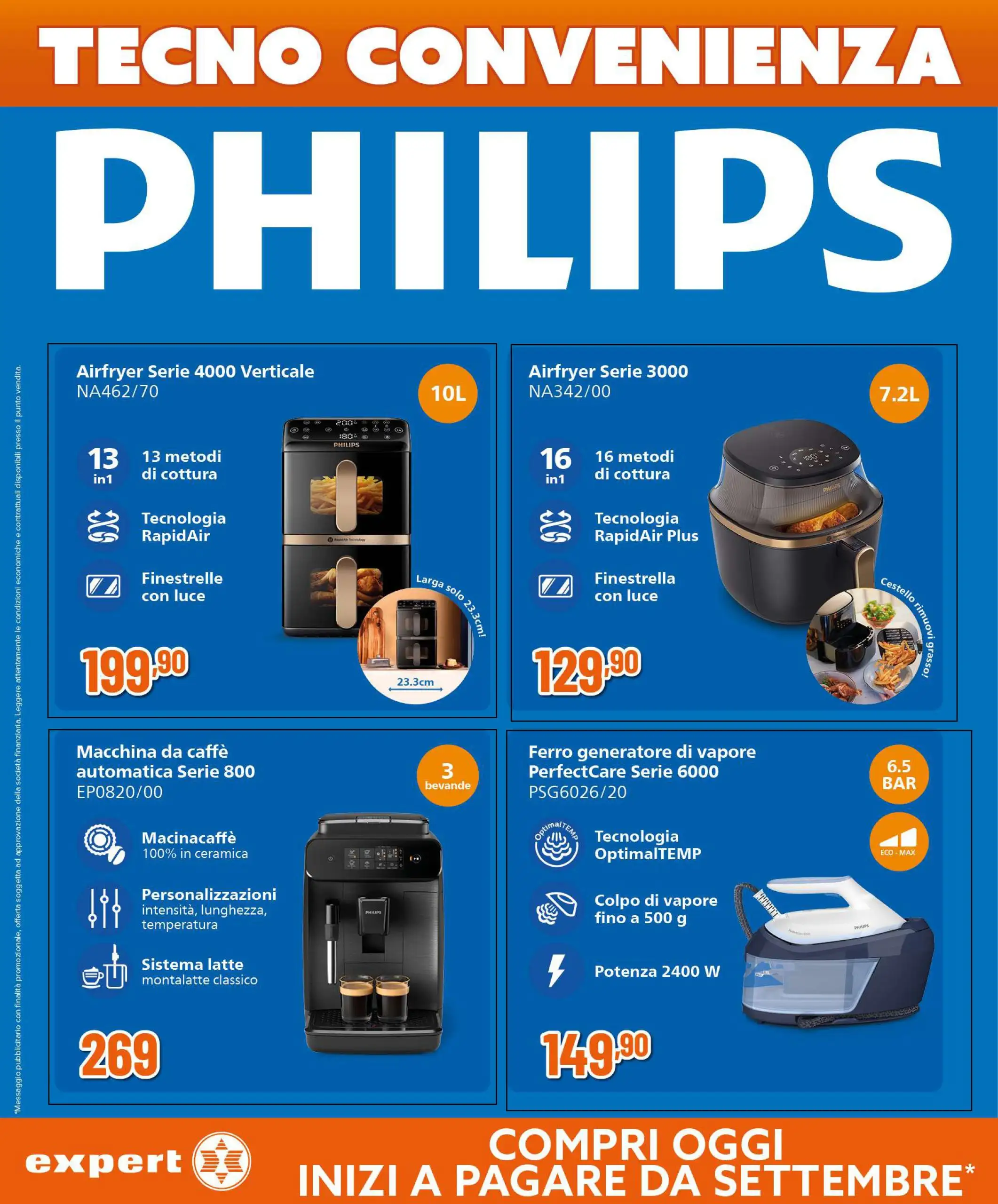 Tecno convenienza nel nuovo volantino Expert: acquistando ora, inizi a pagare da settembre e puoi scegliere fra centinaia di offerte e promozioni sul meglio della tecnologia e degli elettrodomestici.