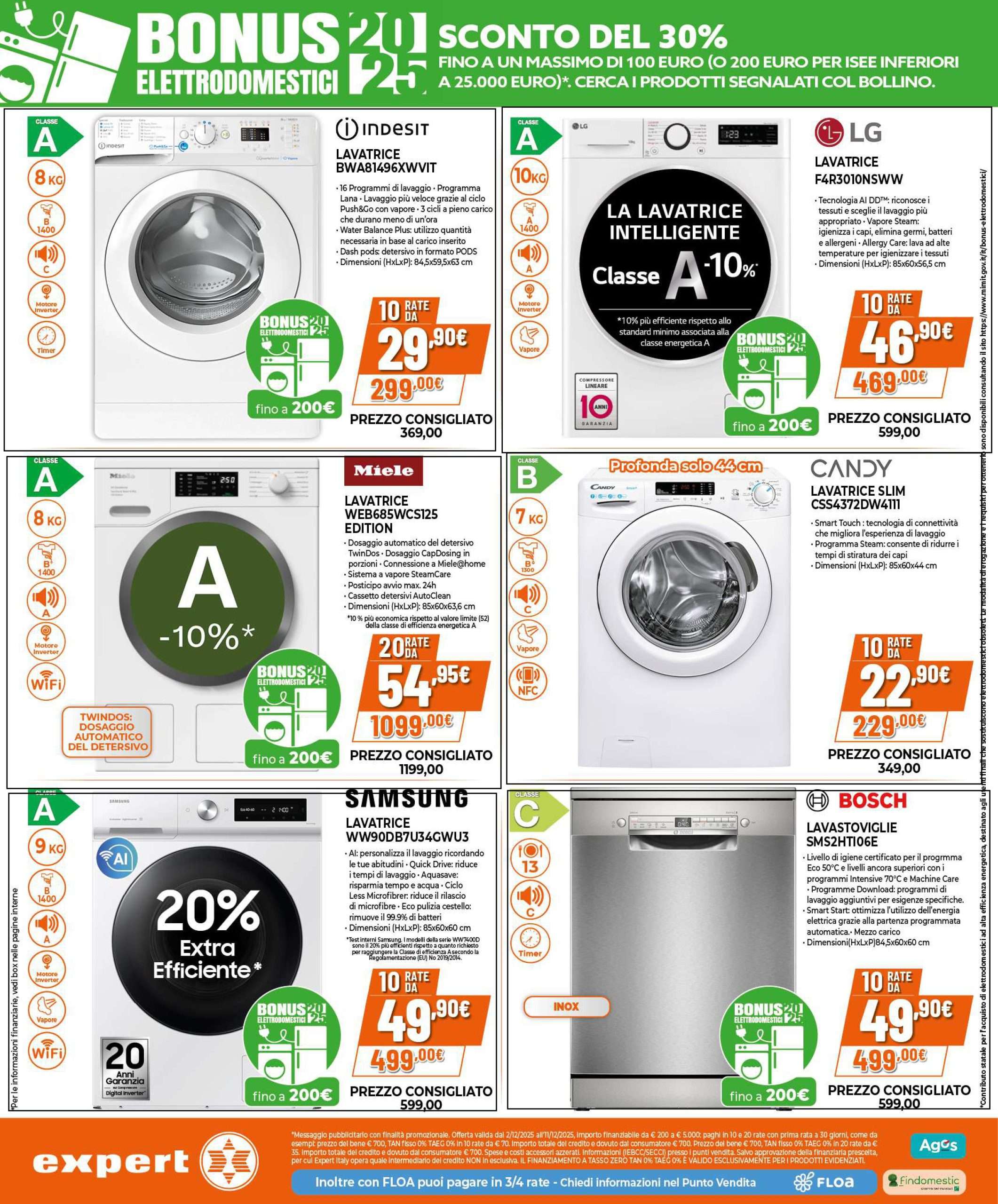 Tante le proposte nel volantino. Expert propone, in primis, la lavatrice Samsung, modello da 8 kg con classe energetica A, a 399 euro. Progettata per ridurre i consumi fino al 70%, offre numerosi programmi e funzionalità.