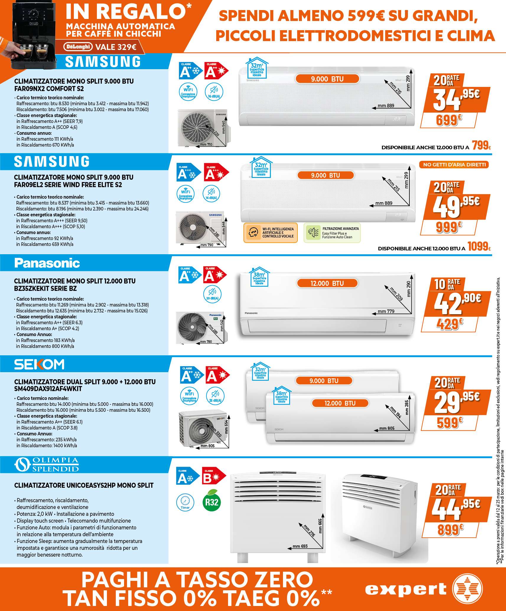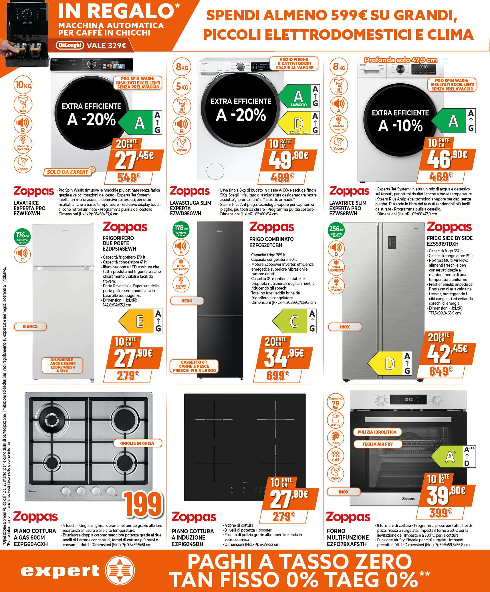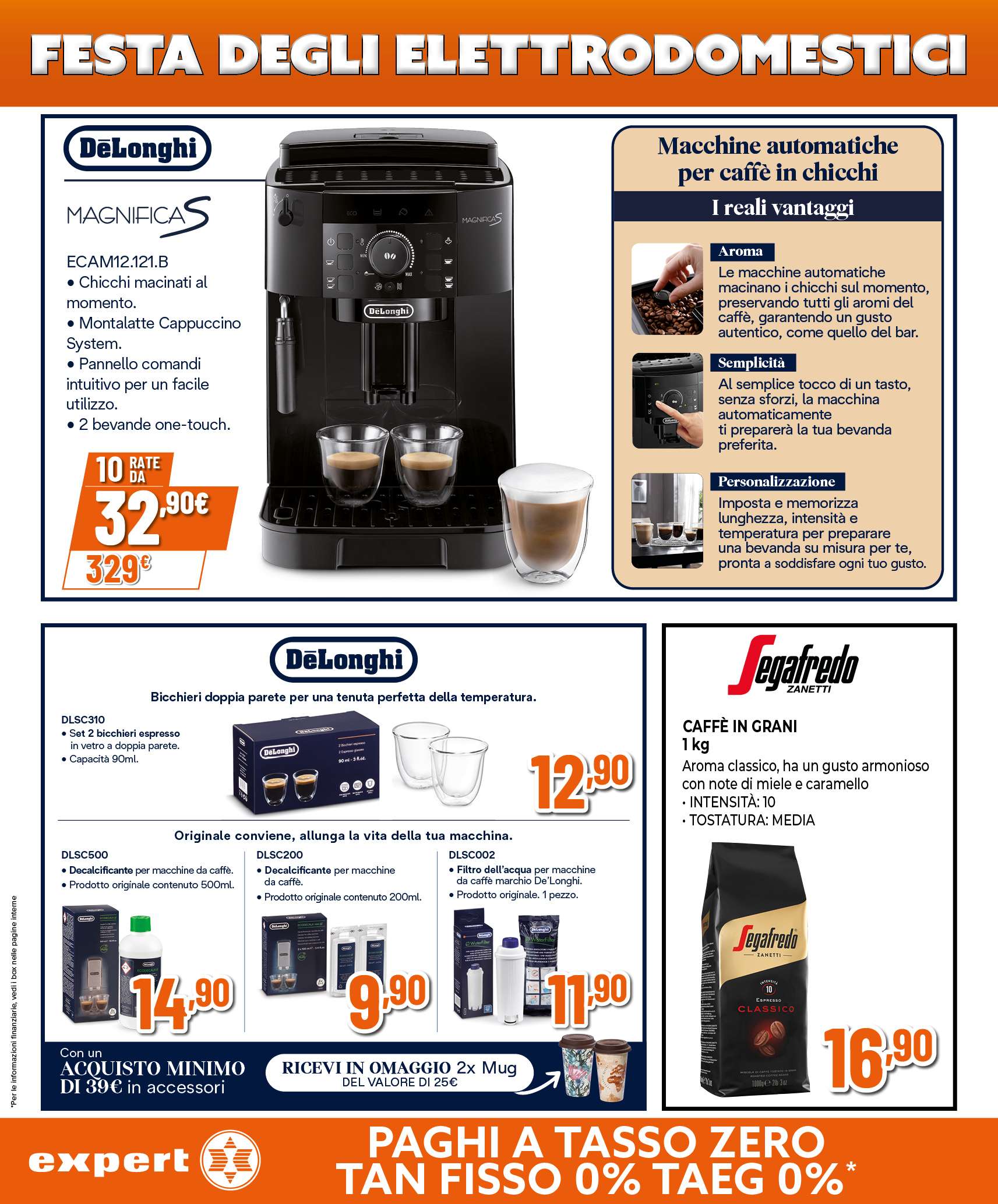 Nuovo volantino Expert, con una promo da non perdere: in occasione della festa degli elettrodomestici, ricevi in regalo la macchina automatica per caffè in chicchi DeLonghi dal valore di 329 euro. Un solo requisito: spendere almeno 599 euro su piccoli, grandi elettrodomestici e climatizzatori.