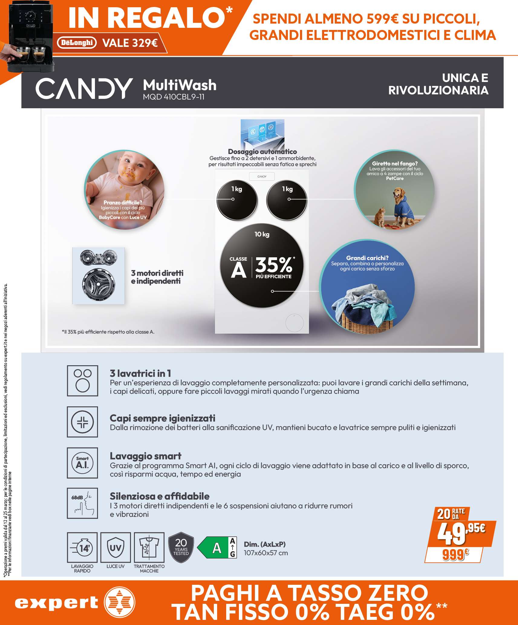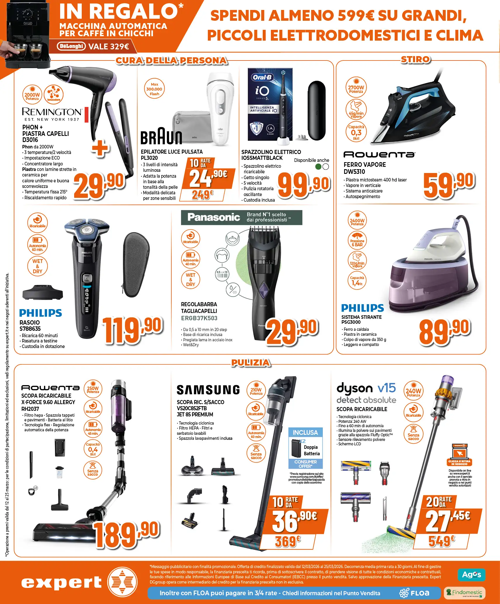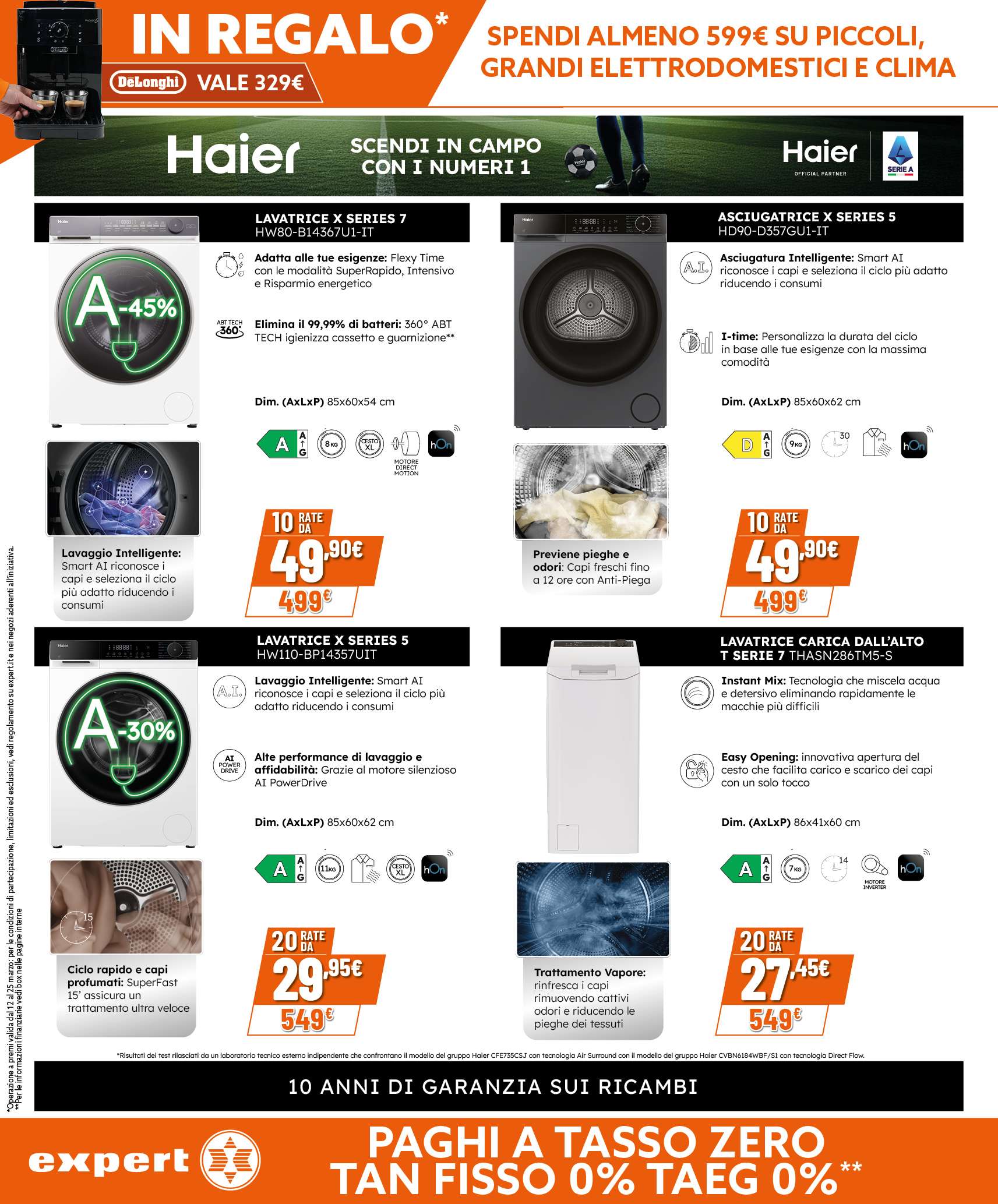 Nuovo volantino Expert, con una promo da non perdere: in occasione della festa degli elettrodomestici, ricevi in regalo la macchina automatica per caffè in chicchi DeLonghi dal valore di 329 euro. Un solo requisito: spendere almeno 599 euro su piccoli, grandi elettrodomestici e climatizzatori.