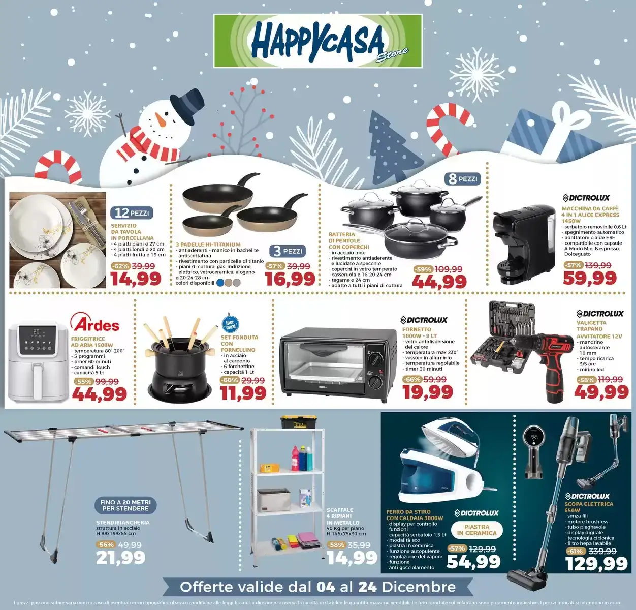 Tante offerte natalizie per regali dell’ultimo minuto da Happy Casa: il volantino, valido fino al 24 dicembre, propone piccoli elettrodomestici, accessori e chicche tutte per la casa, ma anche per il fai da te, a prezzi rigorosamente contenuti. Ecco le migliori offerte.