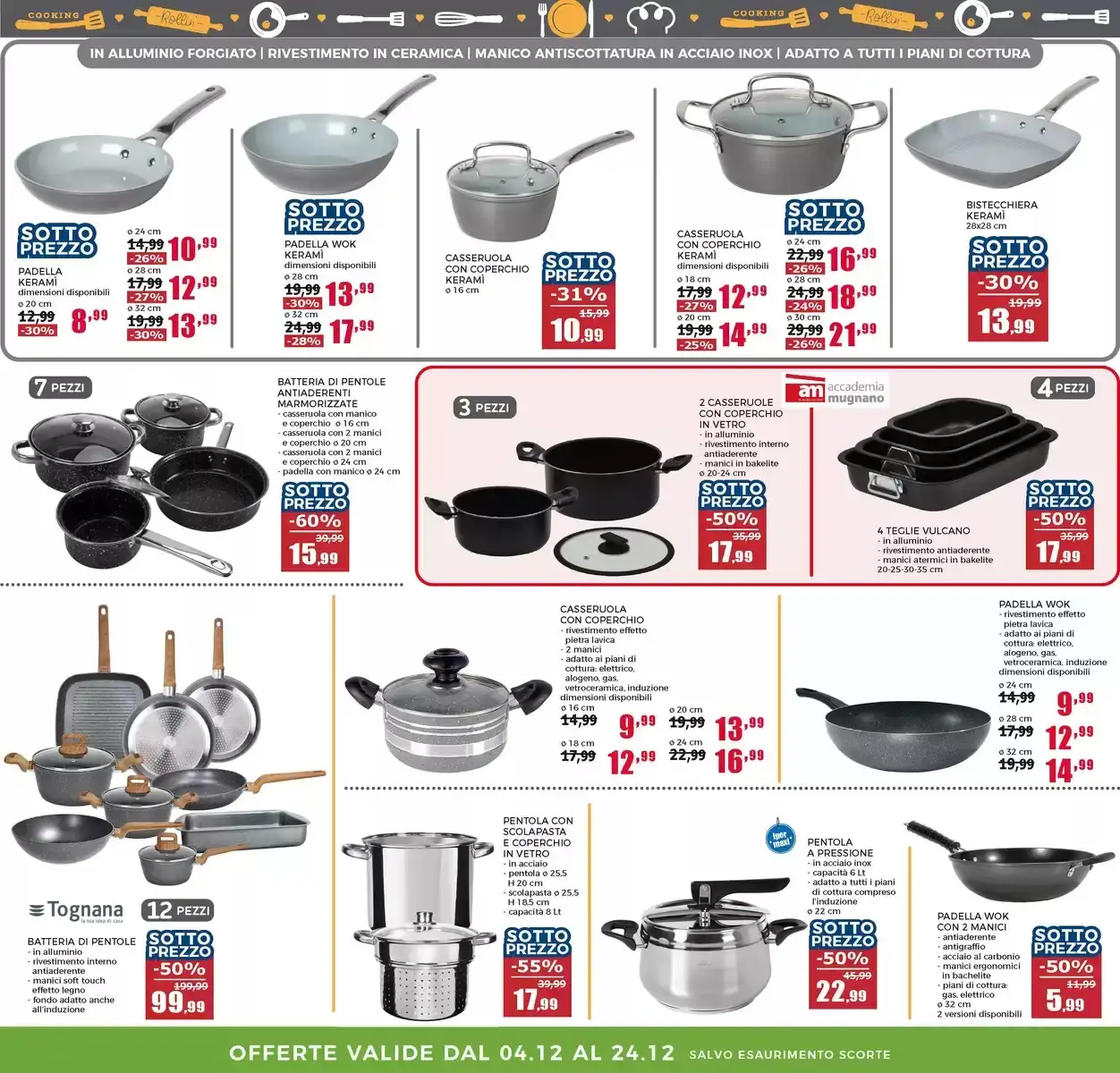 Prezzo occasione anche per la friggitrice ad aria 1500W, in offerta a 44,99 euro con uno sconto del 55%. Include temperatura variabile 80°-200°, cinque programmi, timer 60 minuti e comandi touch. La capacità è di 5 litri. Da non perdere, infine, il set di tre padelle Hi-Titanium antiaderenti con manico in bachelite a 16,99 euro invece di 39,99 euro (-57%).