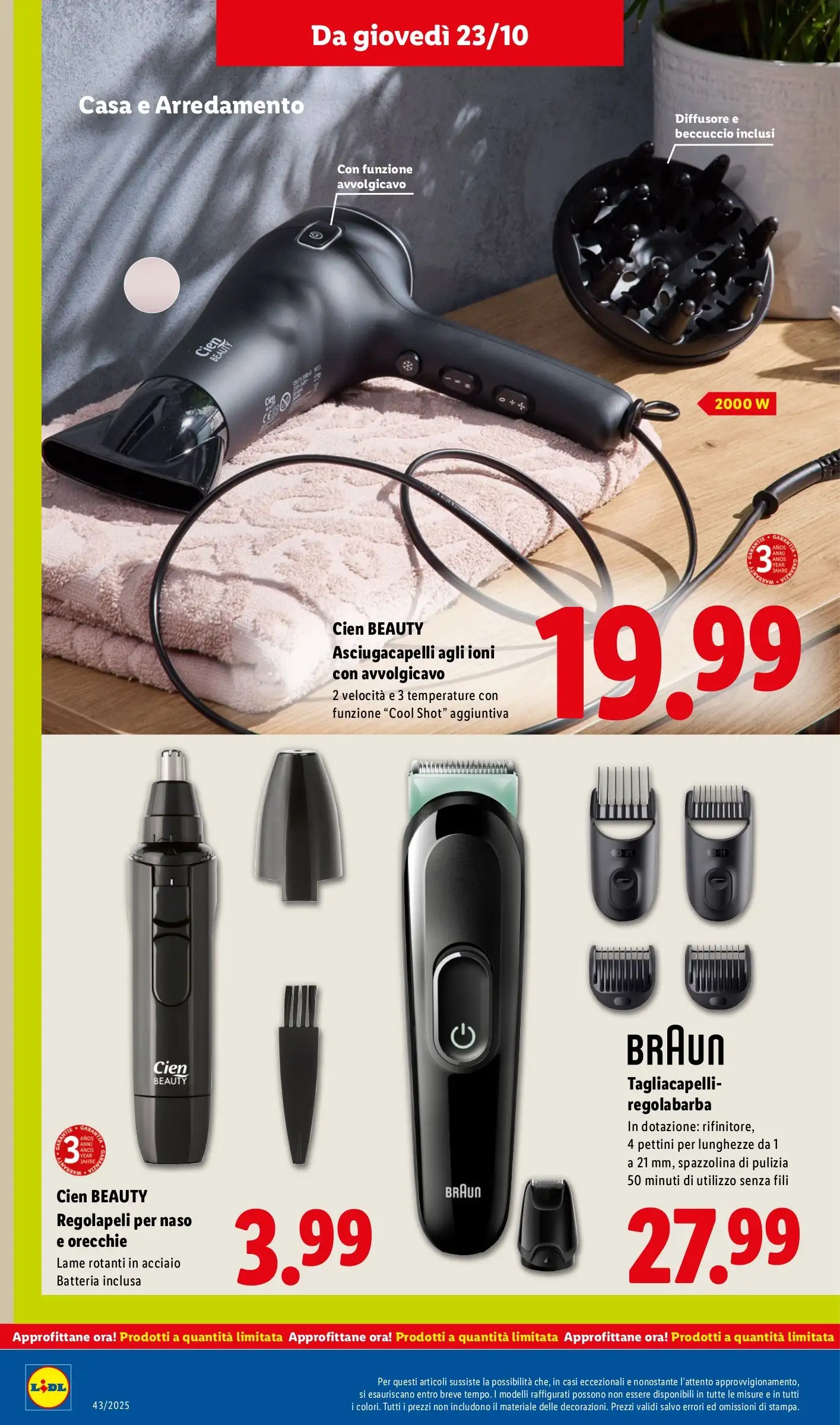 Niente fai da te, ma tanti prodotti dedicati alla casa e alla cura della persona nel prossimo volantino Lidl, in arrivo lunedì 20 e valido fino a domenica 26 ottobre. Una settimana di promozioni all’insegna della convenienza, con tanti articoli firmati Silvercrest e Livarno, tutti disponibili in quantità limitate e dunque fino a esaurimento scorte nei punti vendita Lidl di tutta Italia.