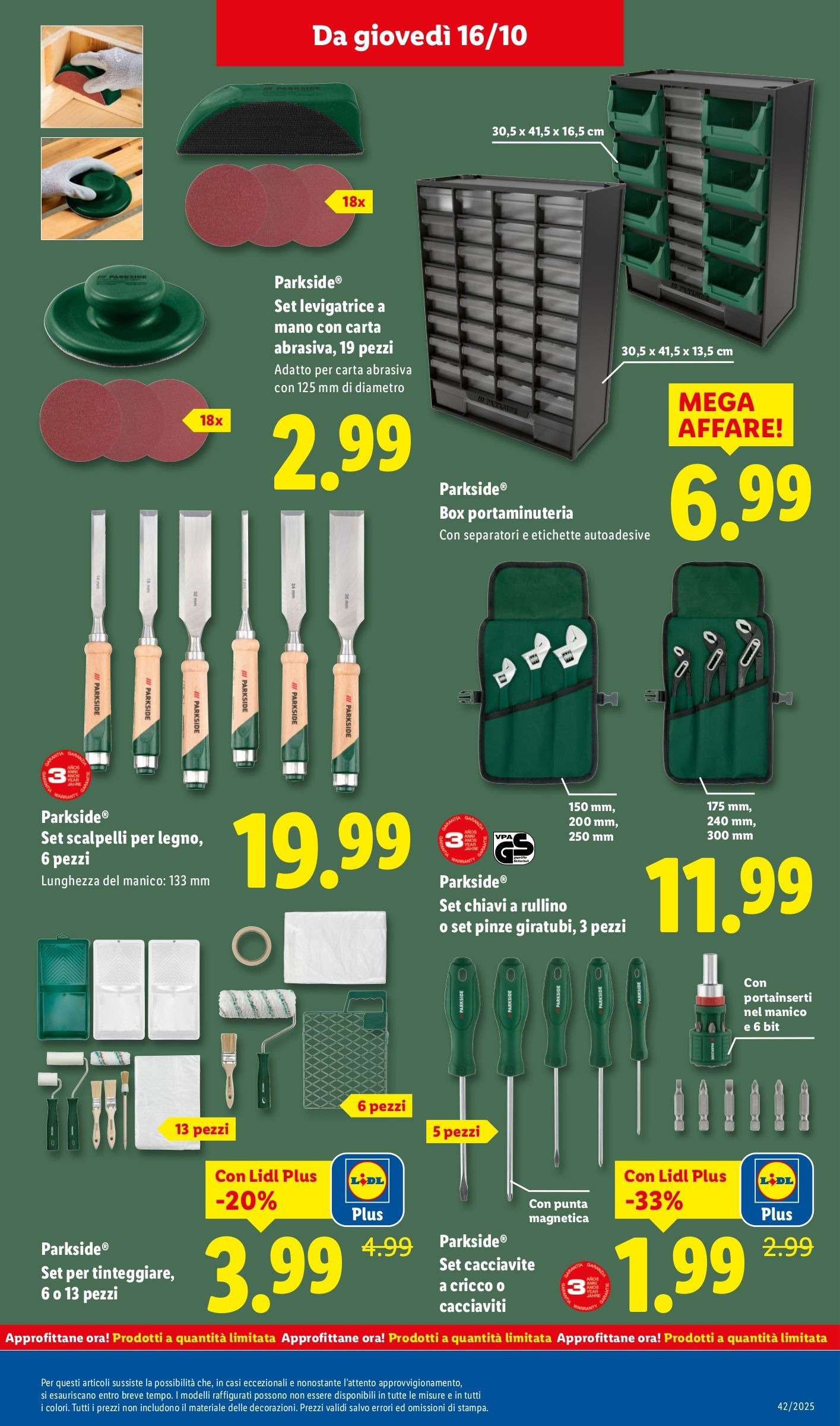 Il volantino Lidl Parkside sarà disponibile da lunedì 13 a domenica 19 ottobre, in tutti i punti vendita Lidl e, come sempre, fino a esaurimento scorte.