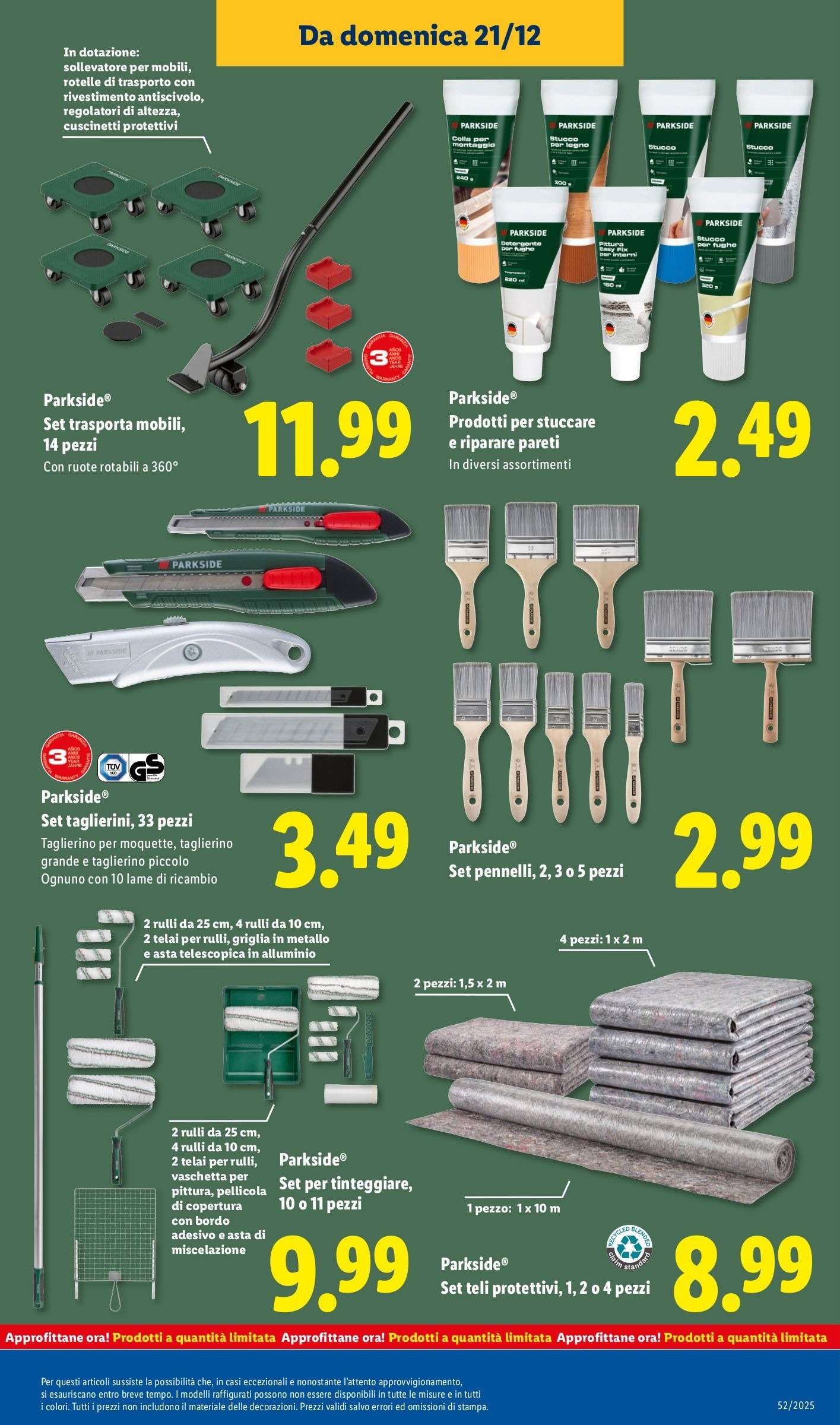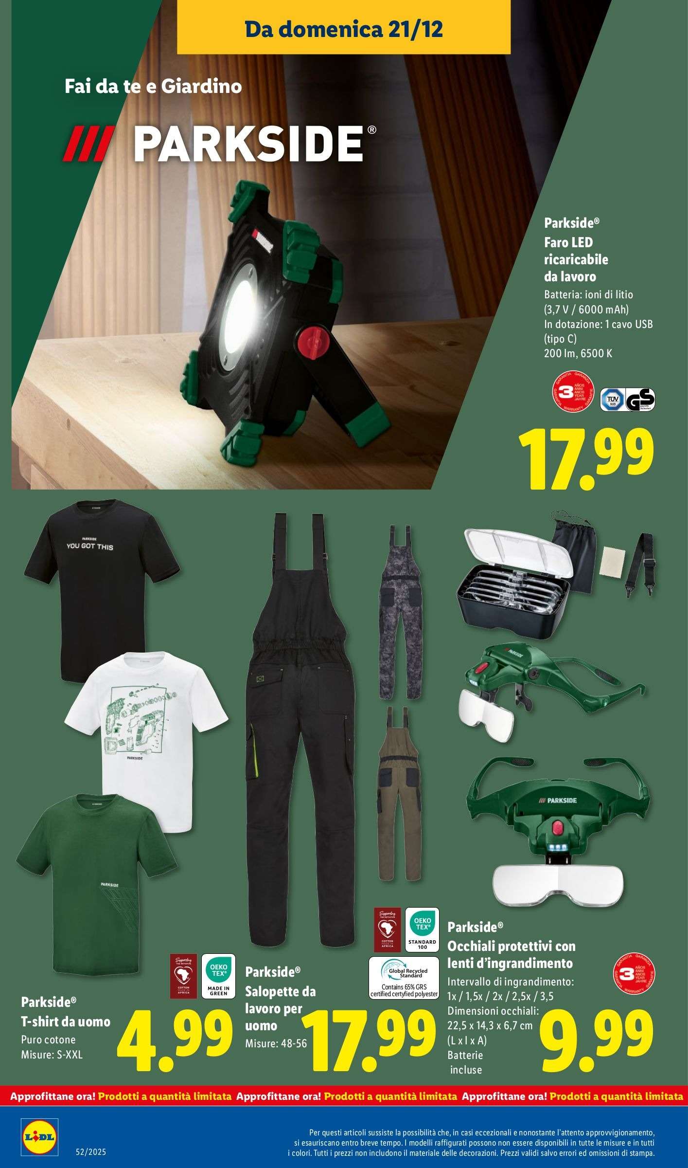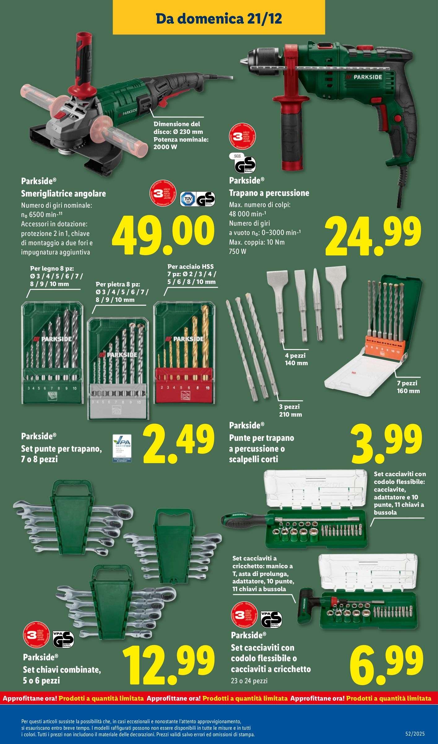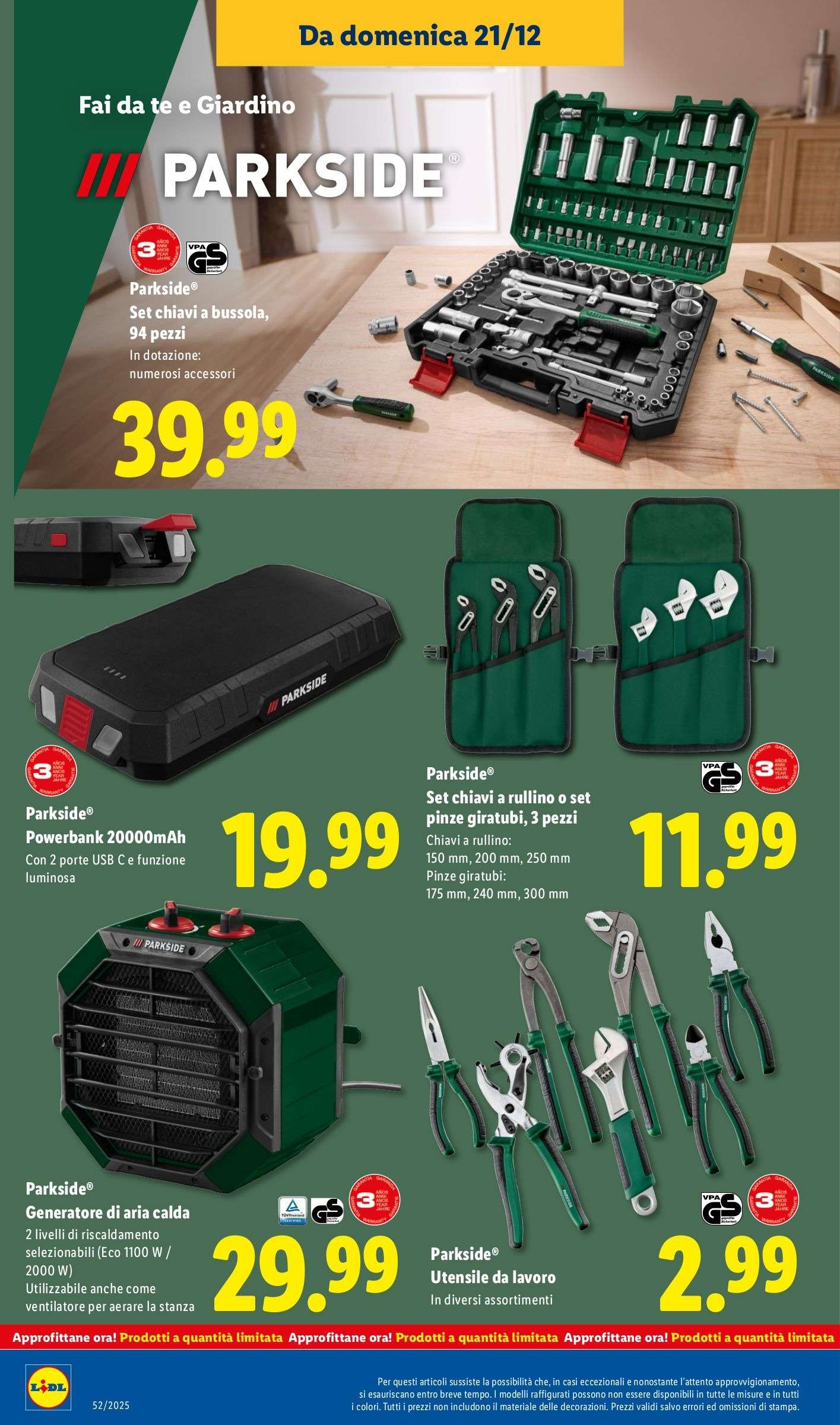 Il volantino Lidl Parkside valido dal 21 al 28 dicembre propone quindi una selezione mirata di utensili e accessori affidabili, con prezzi competitivi e quantità limitate. Perfetti come idea regalo di Natale last minute per appassionati di fai da te.