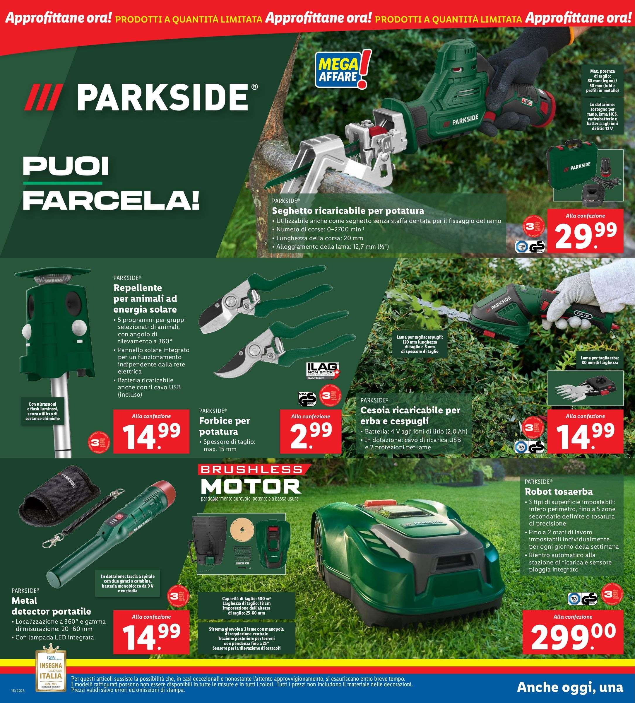Le promozioni sono valide a partire da lunedì 28 aprile e fino al 4 maggio, salvo esaurimento scorte. Tutti i prodotti Parkside sono disponibili nei punti vendita Lidl del territorio: è il momento giusto per rinnovare il tuo angolo verde con attrezzi efficienti e funzionali.