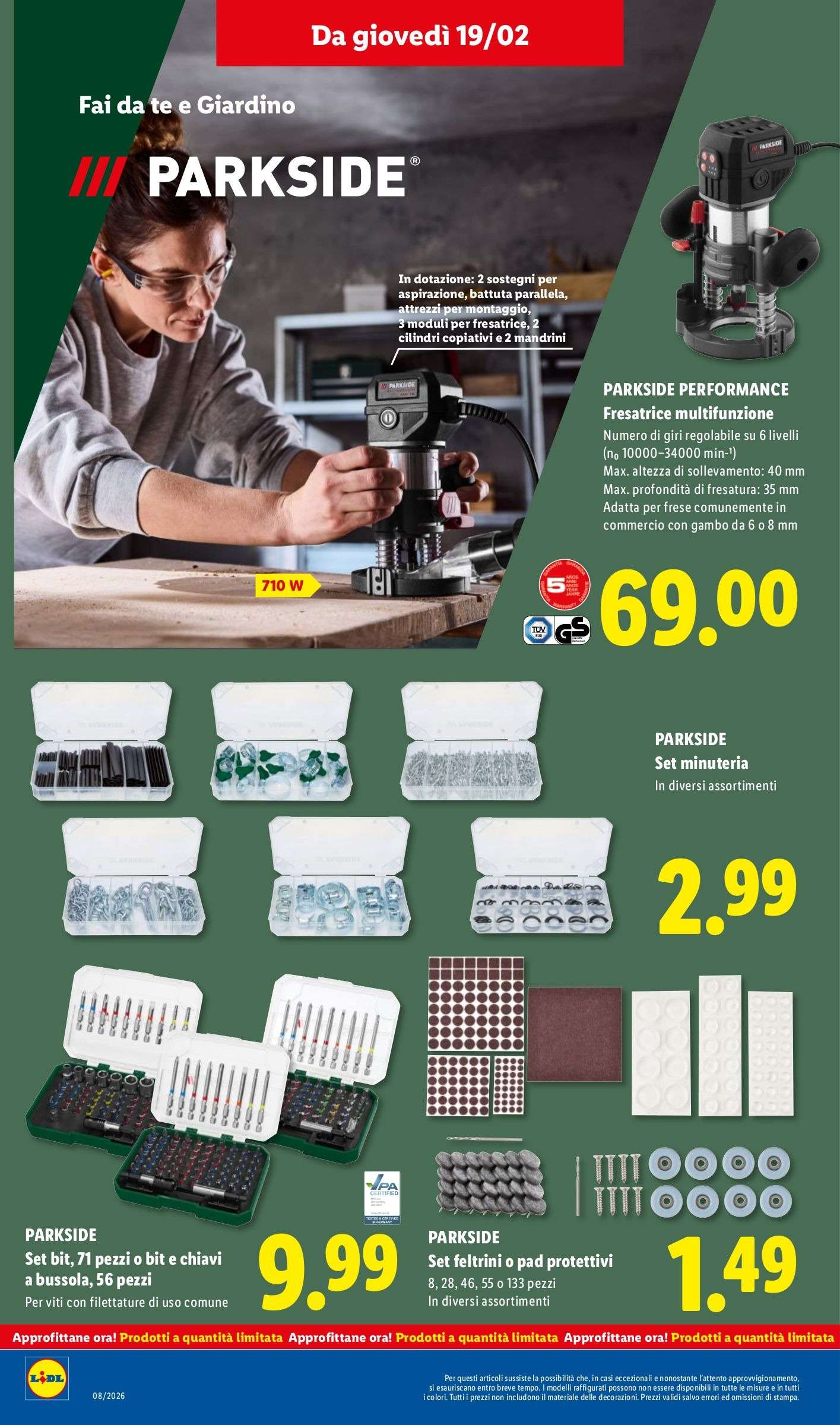 Il volantino Lidl Parkside sarà attivo da lunedì 16 fino a domenica 22 febbraio nei punti vendita della catena, salvo esaurimento scorte, con tantissime promozioni per fai da te e giardinaggio.
