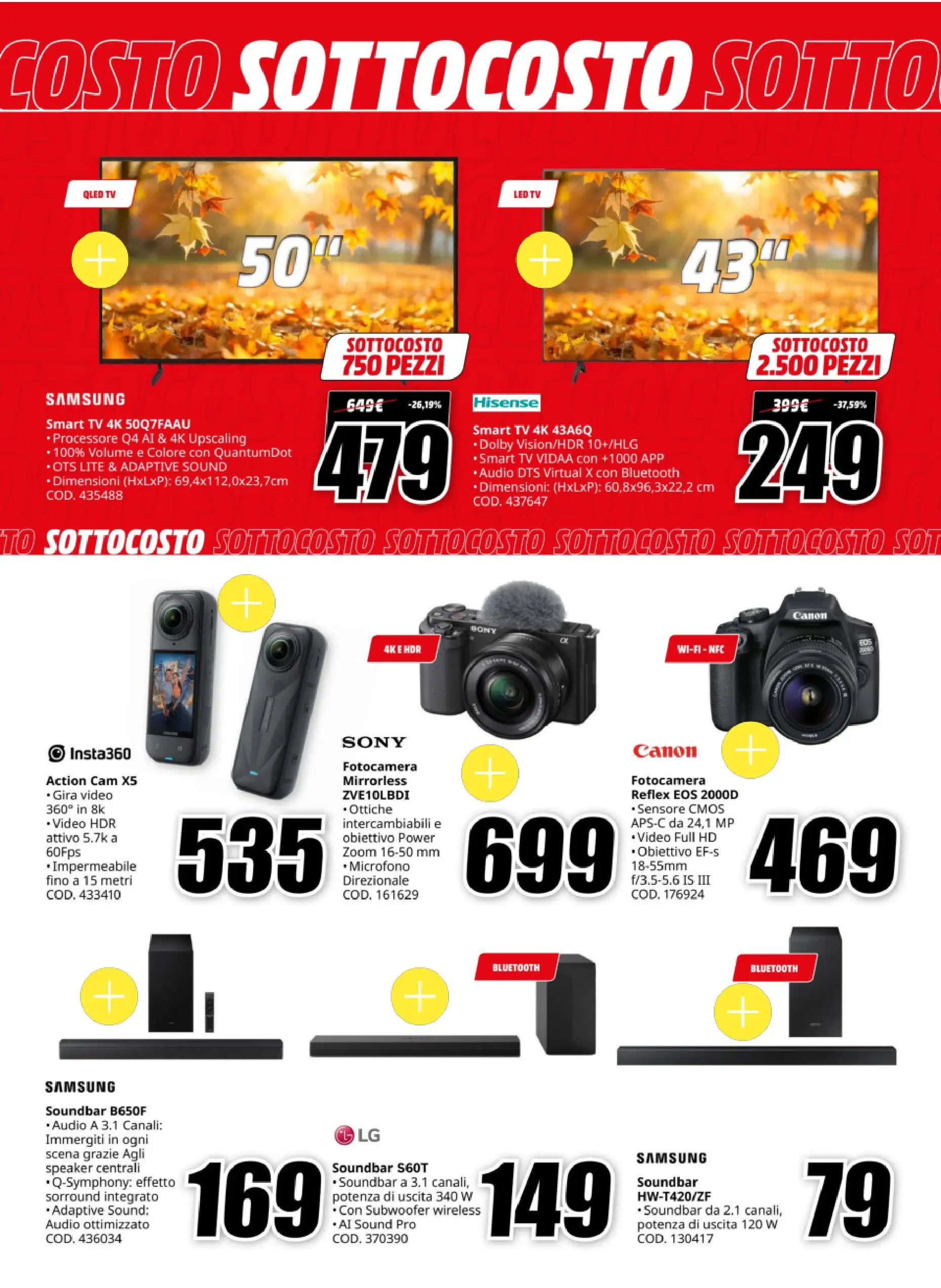 MediaWorld accende l’autunno con una delle promozioni più attese: il volantino Sottocosto, valido fino al 12 ottobre. Tantissime super offerte su TV, smartphone, notebook, tech in generale e grandi elettrodomestici, con sconti da non perdere in quantità limitatissime. Le parole d’ordine, come sempre, sono qualità e convenienza, ma stavolta MediaWorld ha alzato davvero l’asticella.