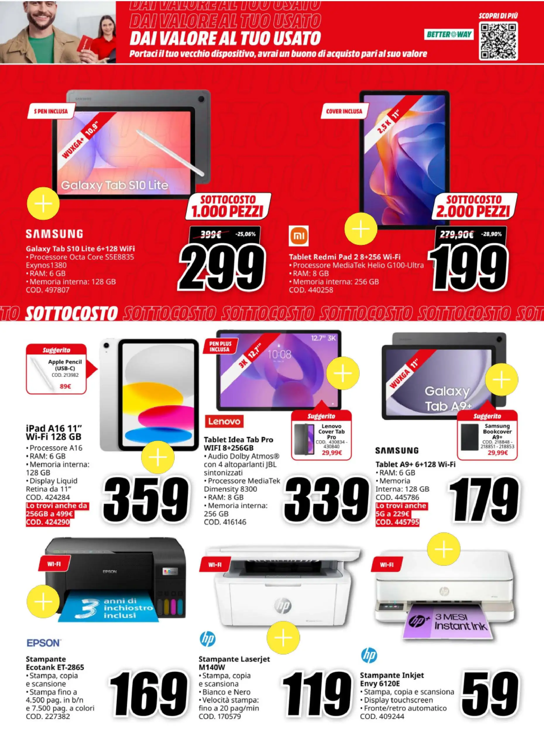 Il nuovo volantino MediaWorld Sottocosto è, in poche parole, l’occasione perfetta per portarsi a casa il meglio della tecnologia spendendo meno. Le offerte sono valide solo fino al 12 ottobre, in negozio e online, e fino a esaurimento scorte.