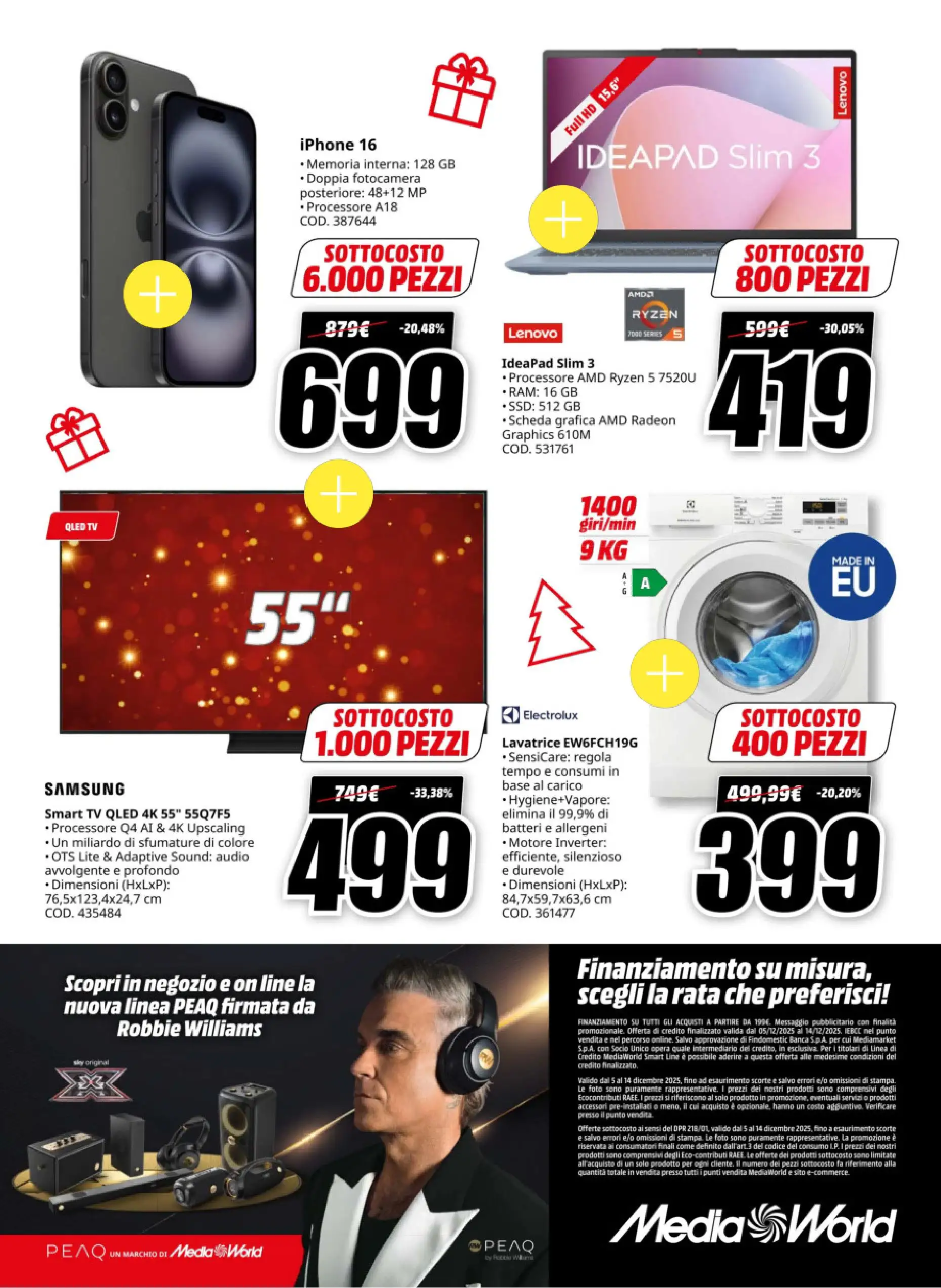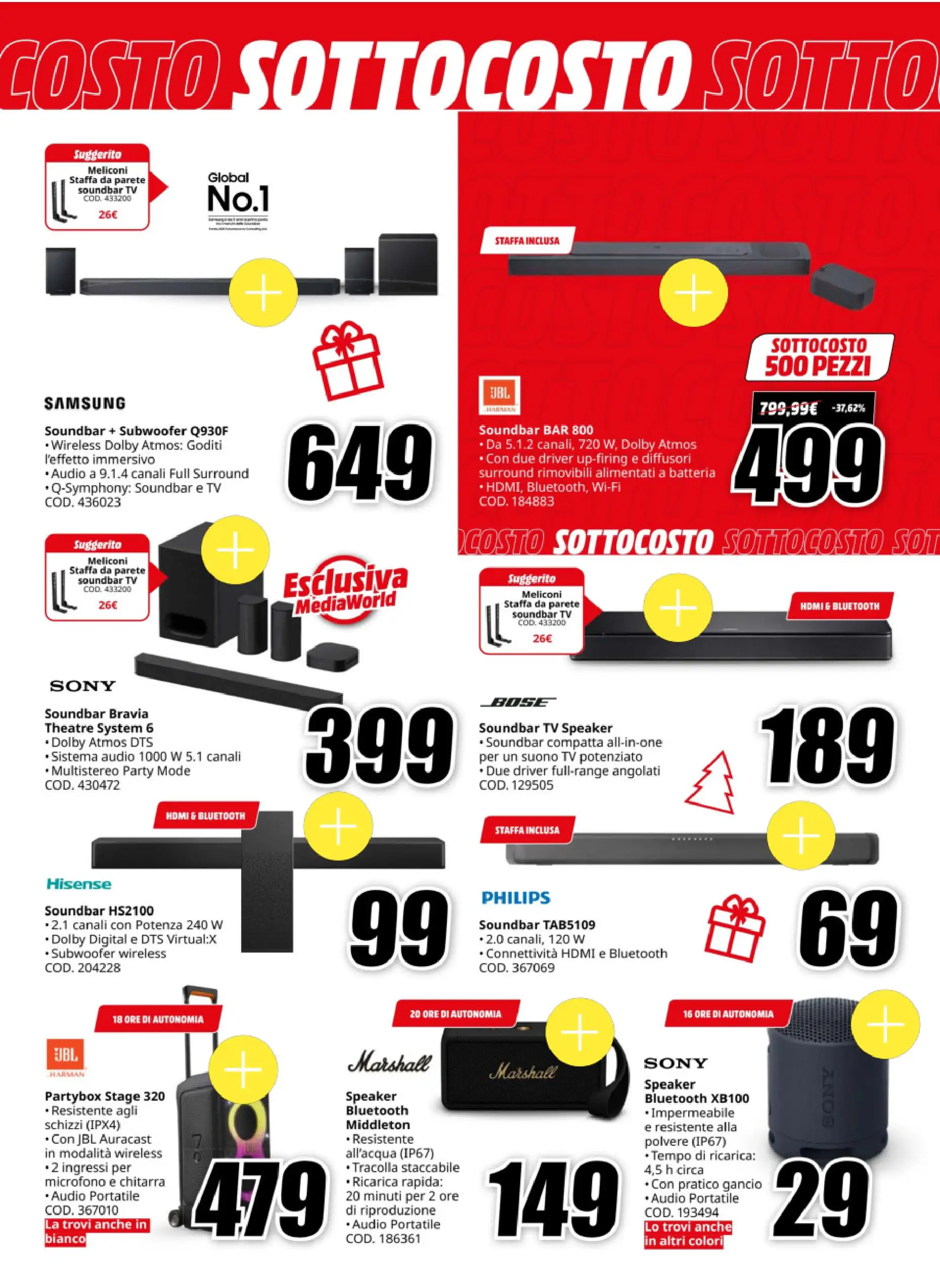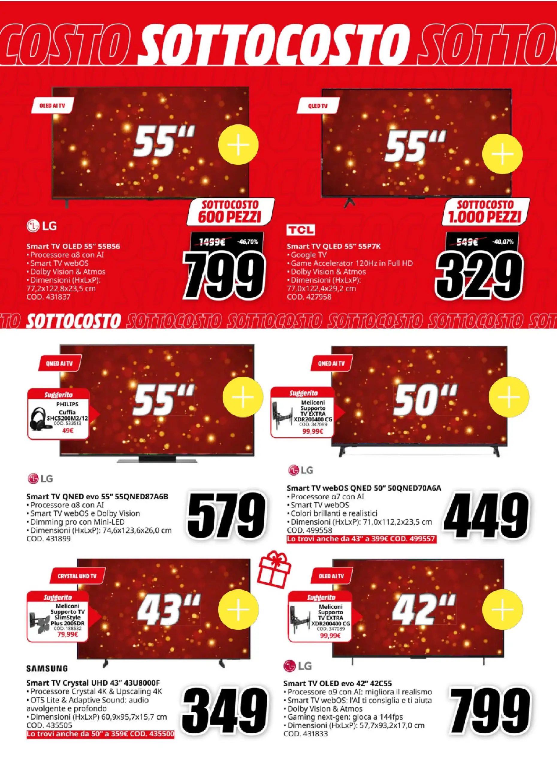 Il volantino MediaWorld Sottocosto sarà attivo soltanto fino al 14 dicembre, in tutti i punti vendita e online. È il momento giusto per pensare a un regalo di Natale tech, approfittando dei tanti sconti disponibili fino a esaurimento scorte.