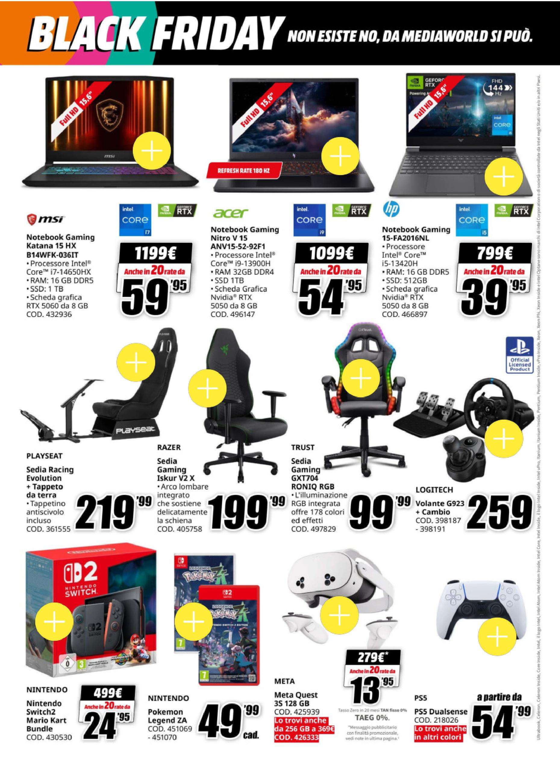 Il volantino MediaWorld dedicato al Black Friday si conferma dunque un appuntamento imperdibile: le offerte sono valide fino al 1° dicembre, online e nei punti vendita della catena.