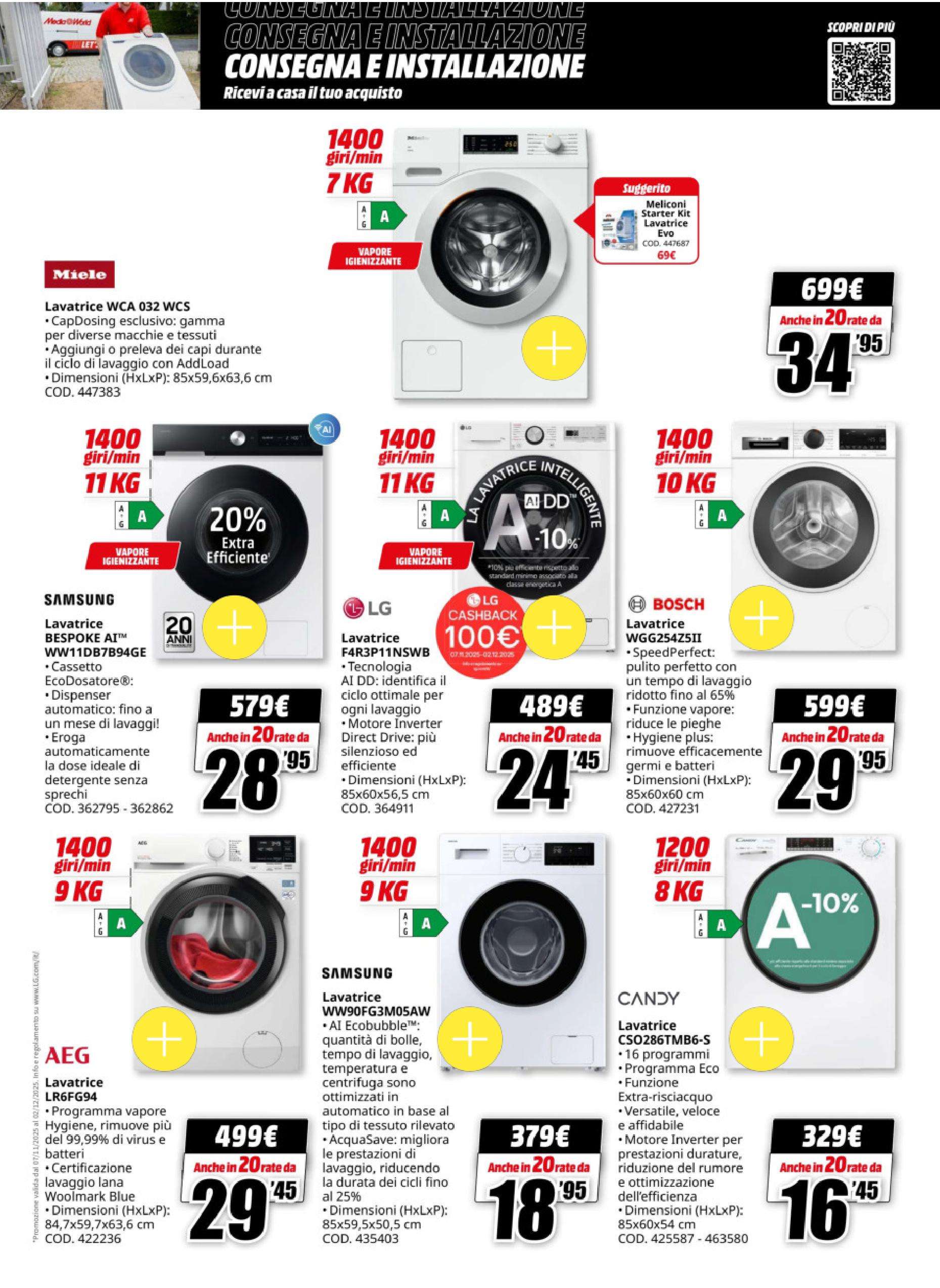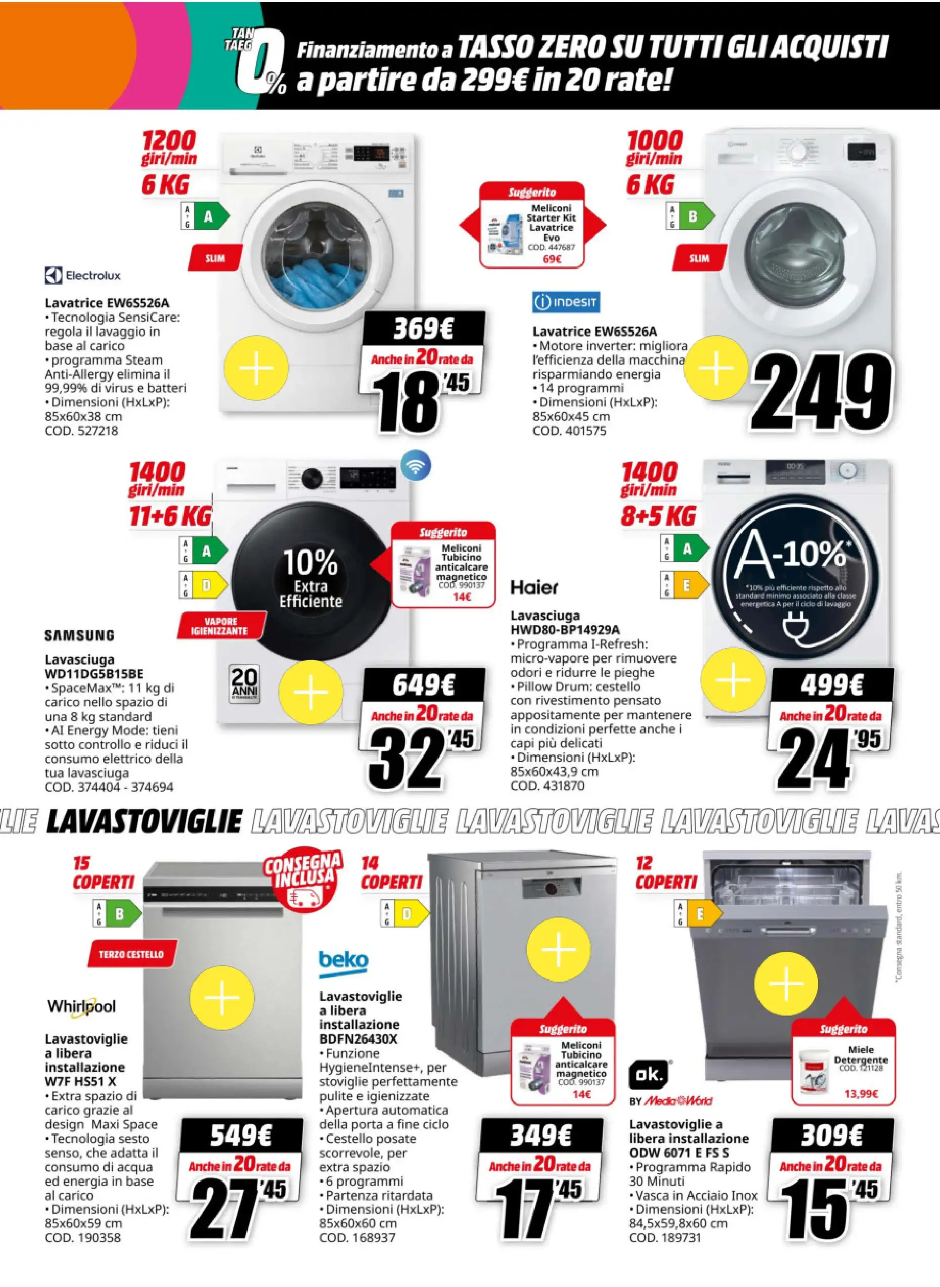 Nella sezione dedicata ai grandi elettrodomestici troviamo invece l’asciugatrice Electrolux da 8 kg, progettata per essere efficiente e delicata sui capi. Il prezzo è di 549 euro, anche questo con possibilità di pagamento a rate.